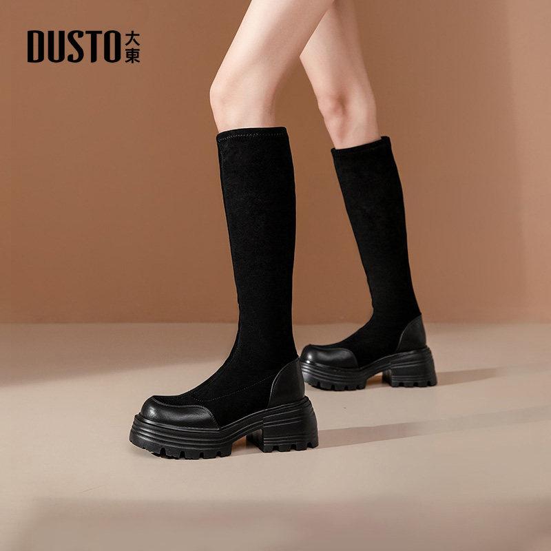 大东dd厚底长靴女2025新款秋冬女靴爆款长筒靴高筒瘦瘦骑士烟筒靴