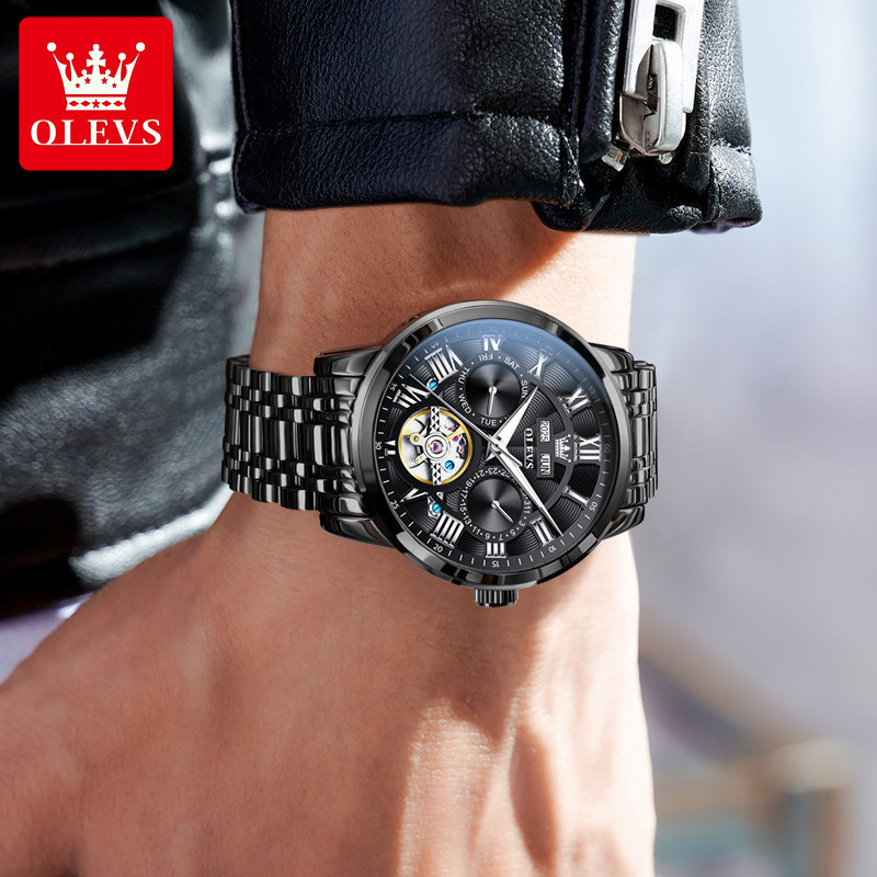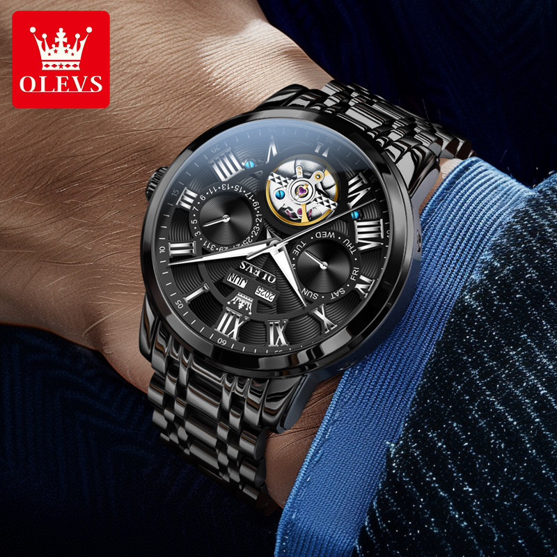 欧利时正品钢带夜光防水机械男表