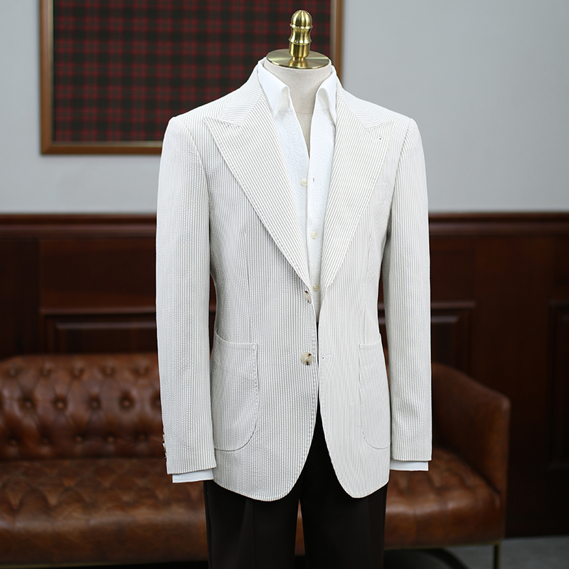 IsirHonour意式春夏那不勒斯戗驳领条纹泡泡纱休闲西装复古西服男