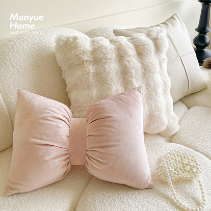 M.life 粉色蝴蝶结抱枕抱枕套奶油色沙发腰靠枕床头靠垫软包含芯