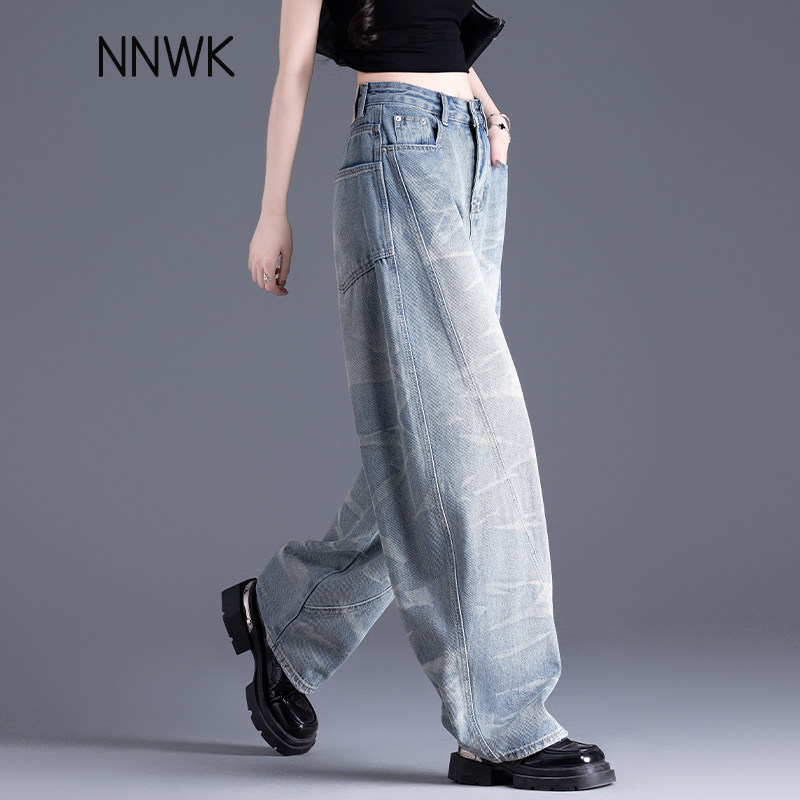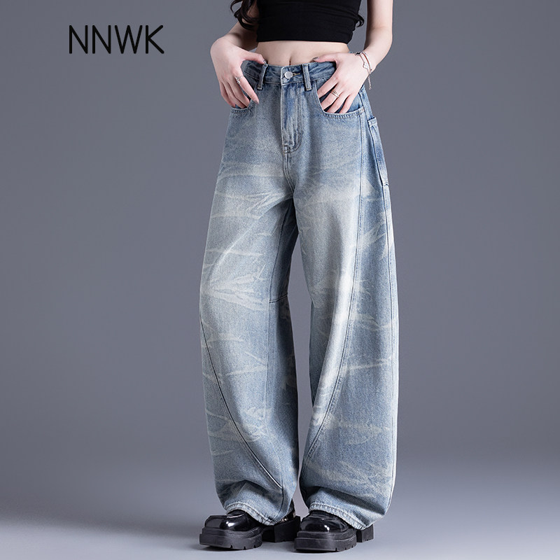 弯刀牛仔裤女2026新款夏季高腰宽松镰刀裤子复古扎染风阔腿哈伦裤