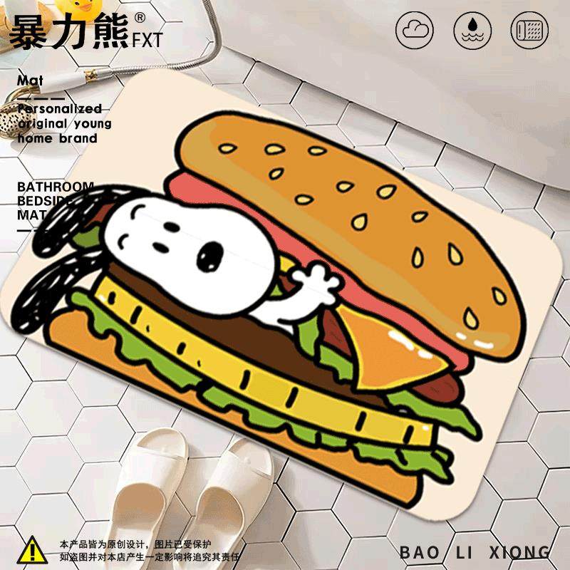 卫生间地垫防水防滑垫汉堡史努比硅藻泥地垫浴室吸水地垫阳台地垫