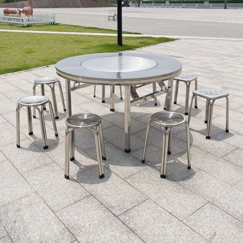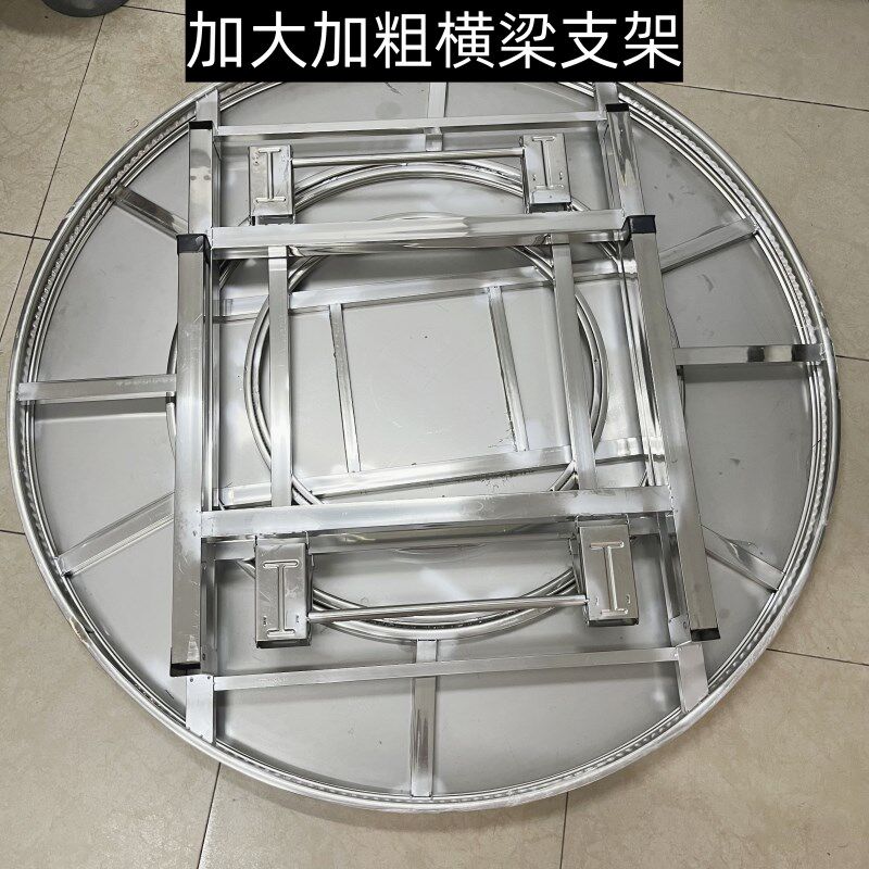 不锈钢内置转盘可折叠大圆桌 带转盘家用酒席饭店餐桌 连体大圆台