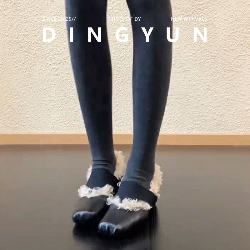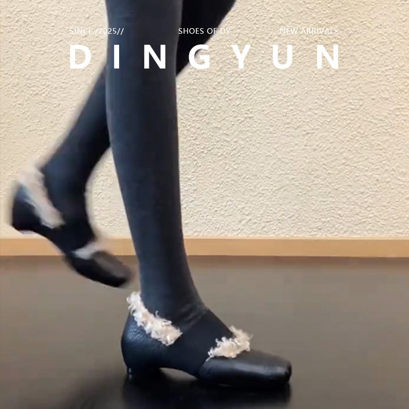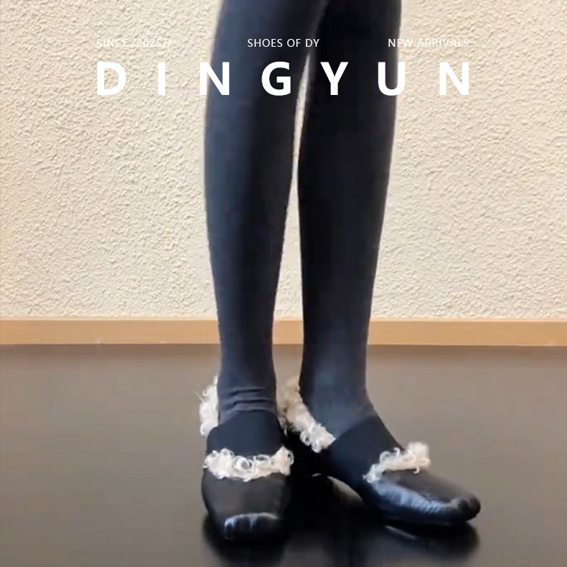 丁允dingyun复古方头毛毛鞋女加绒内增高保暖鞋中跟轻奢单鞋冬