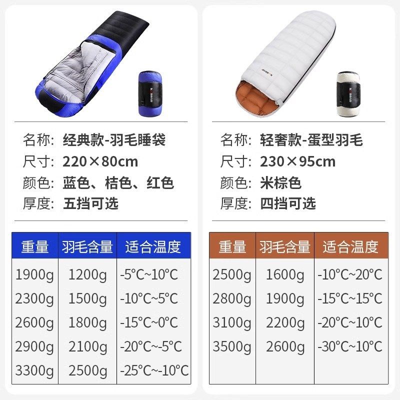 羽毛睡袋成人户外冬季露营大人情侣加大超轻便携鸭毛睡袋零下20度