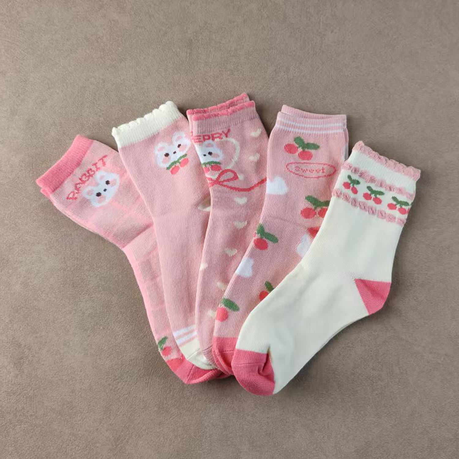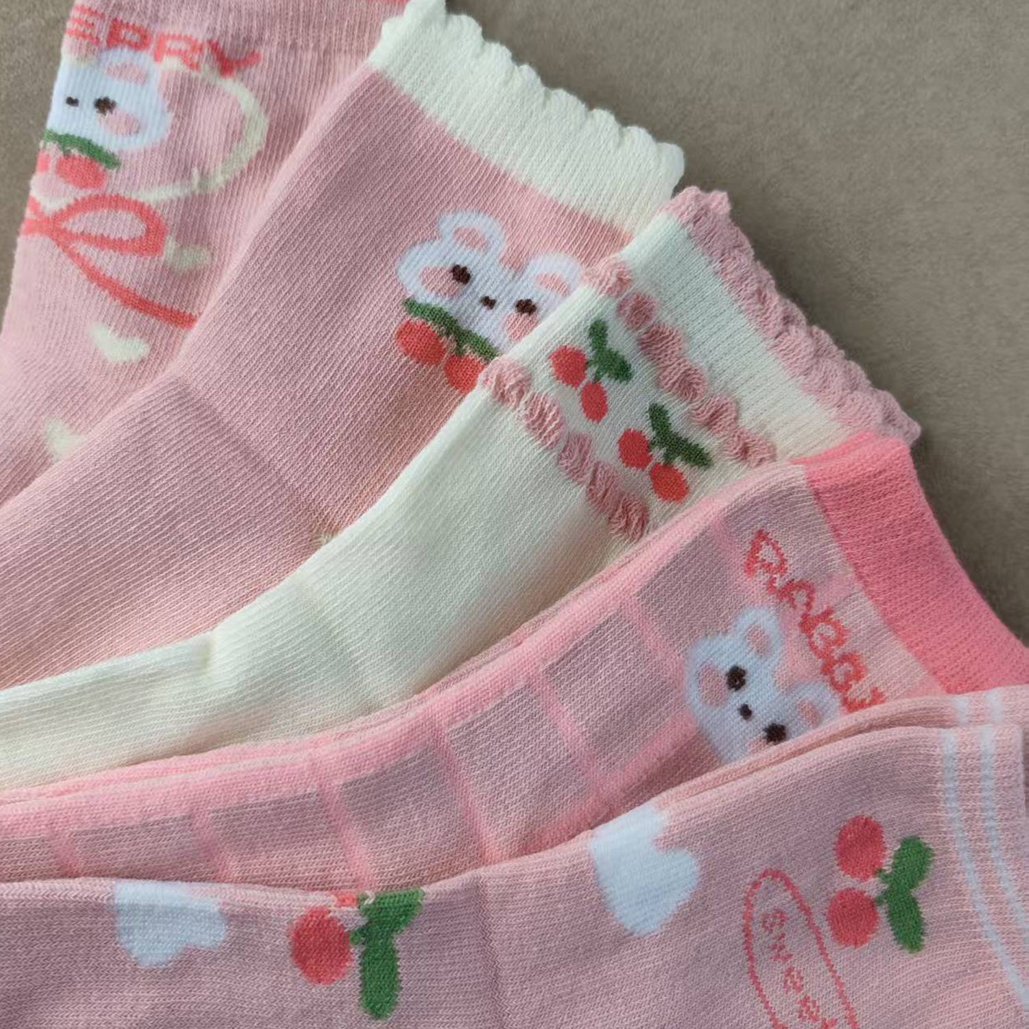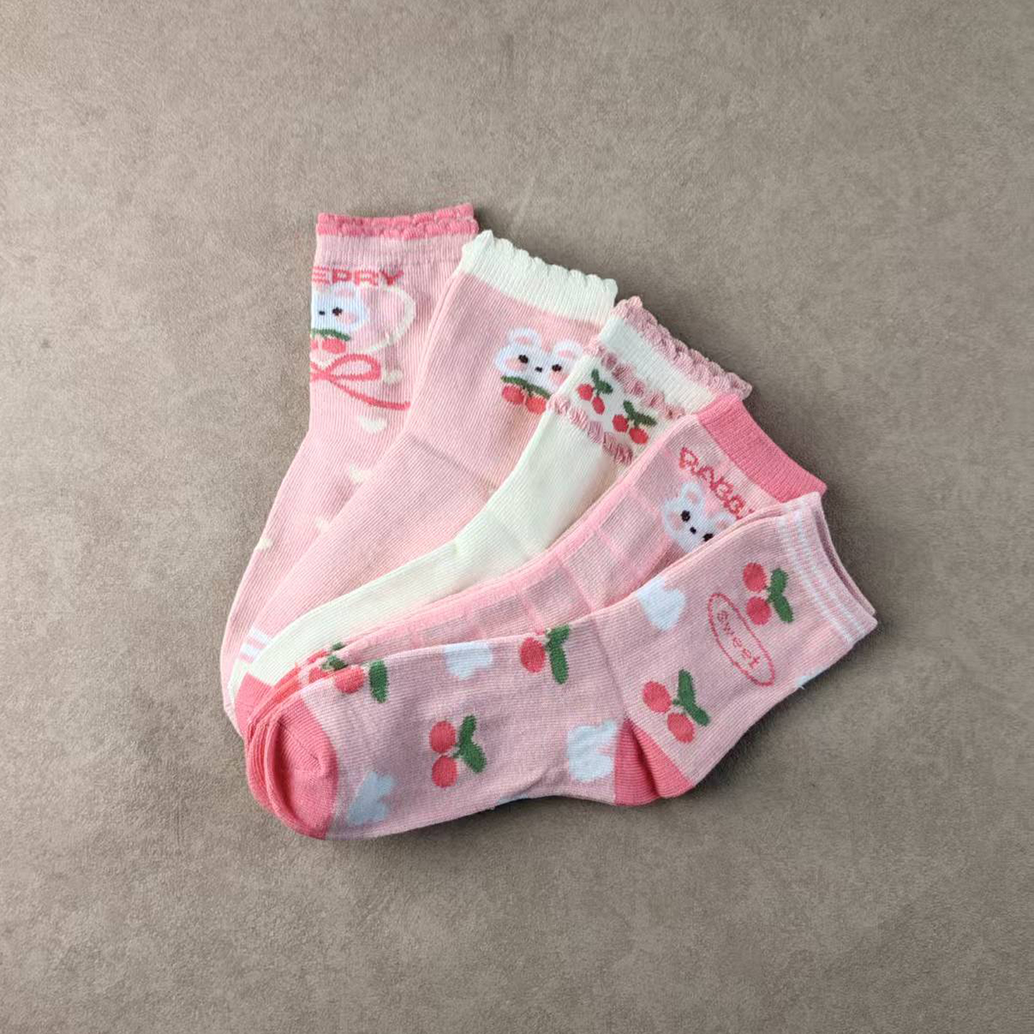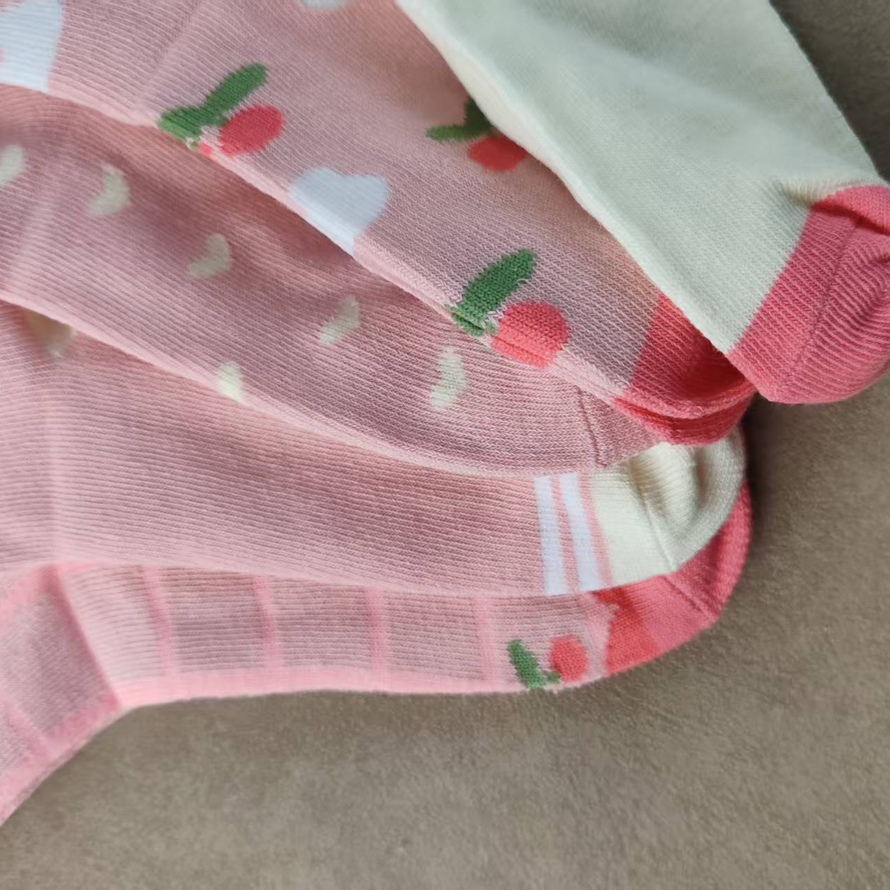 库存春秋儿童袜子中筒袜7-9岁女童卡通可爱秋冬女宝粉色纯棉吸汗
