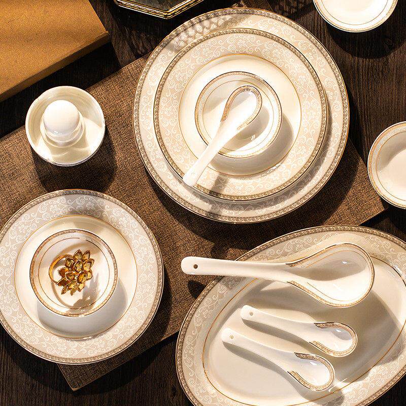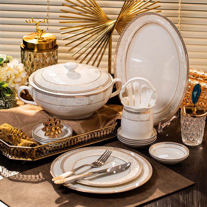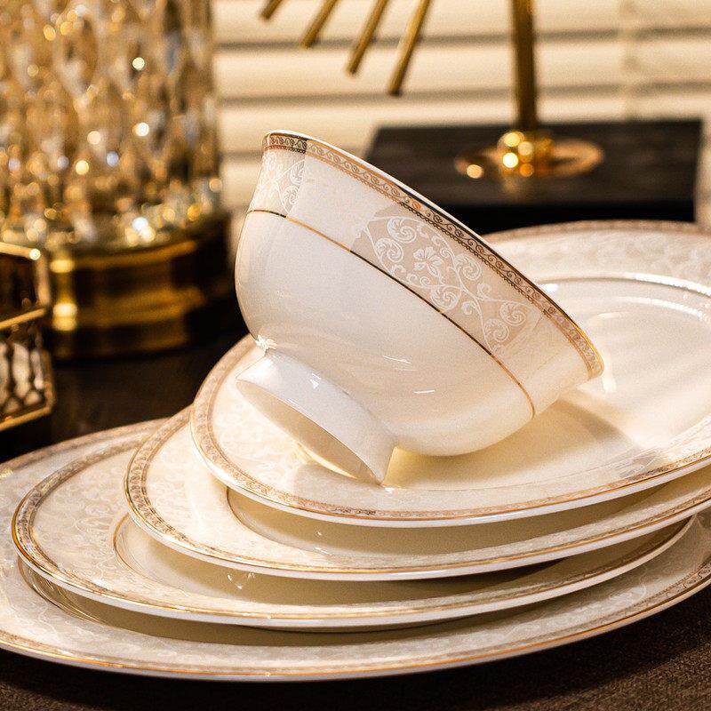 锦怡佳 景德镇陶瓷器骨瓷餐具碗碟套装家用欧式吃饭套碗盘子组合