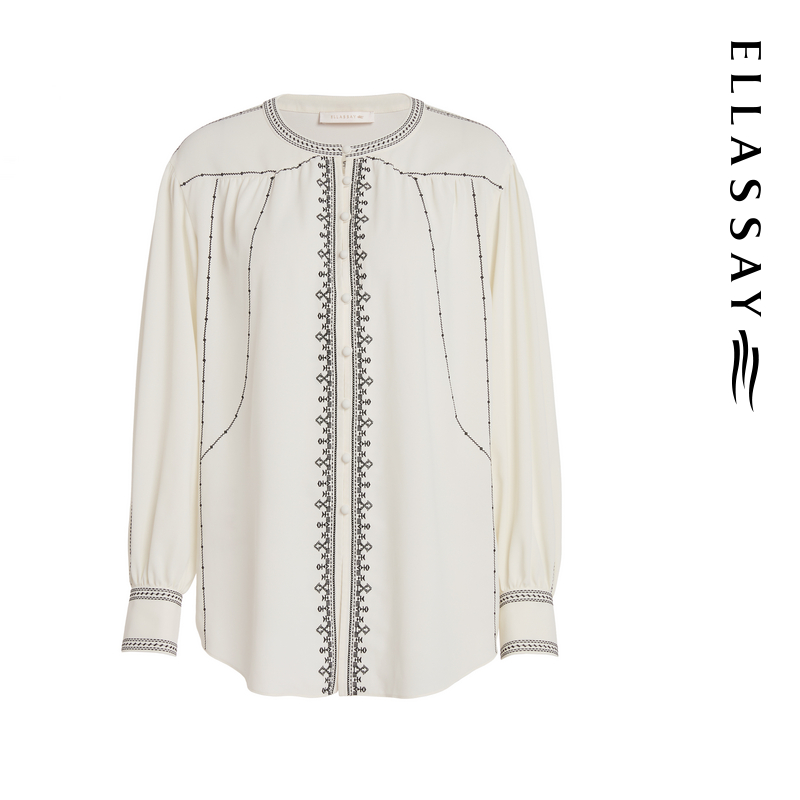 ELLASSAY歌力思25秋冬新款波西米亚度假风雪纺宽松刺绣长袖衬衫女