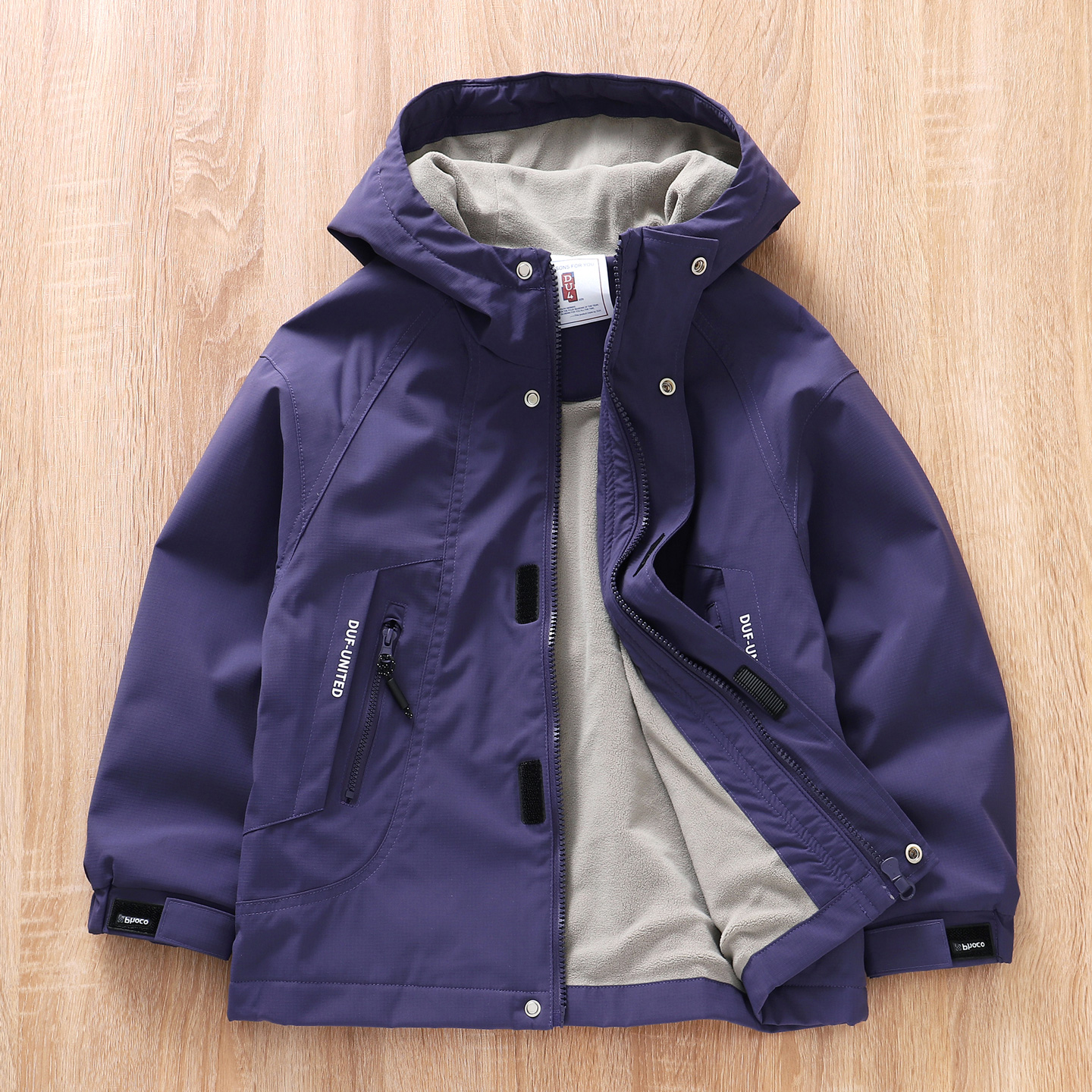 I高品质男童秋冬新款连帽加绒外套~中大童防风冲锋衣高品质童装9