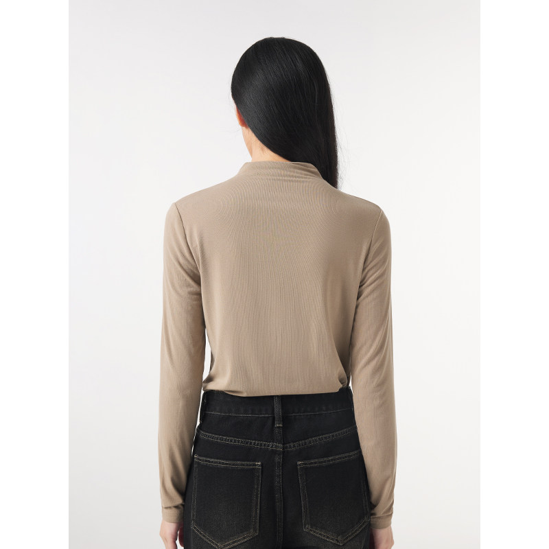 热风秋季新款女士纯色简约基础修身显瘦款打底舒适长袖T恤