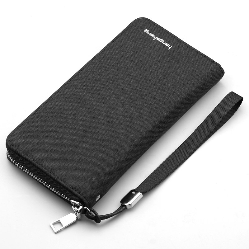 新款男士拉链钱包长款帆布大容量手机包内拉链卡包青年个性手抓包