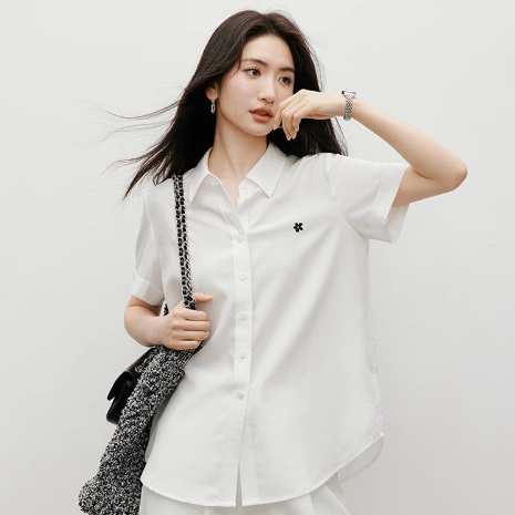 红袖白色亚麻衬衫2025夏季新款女装花朵刺绣翻领垂感天丝气质上衣