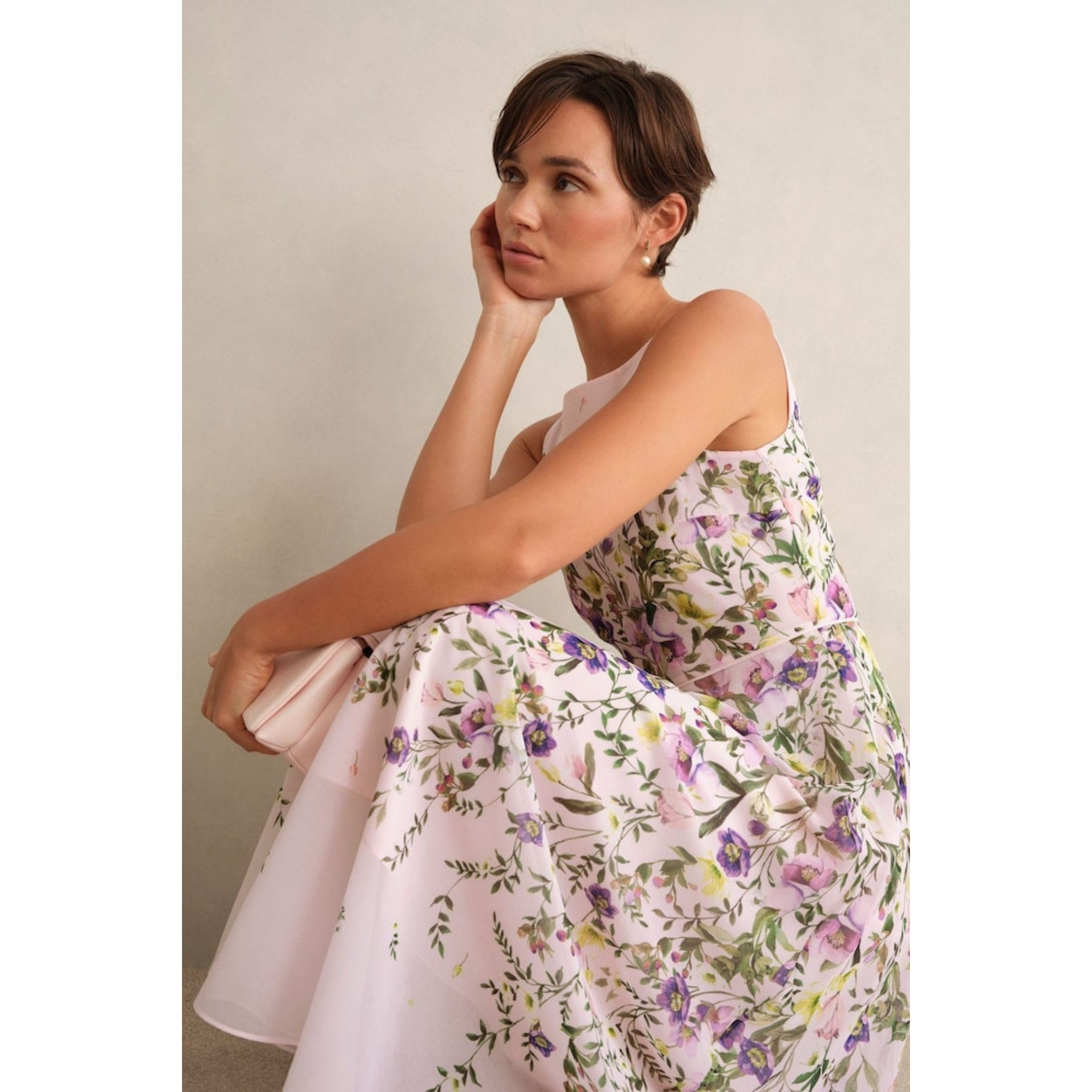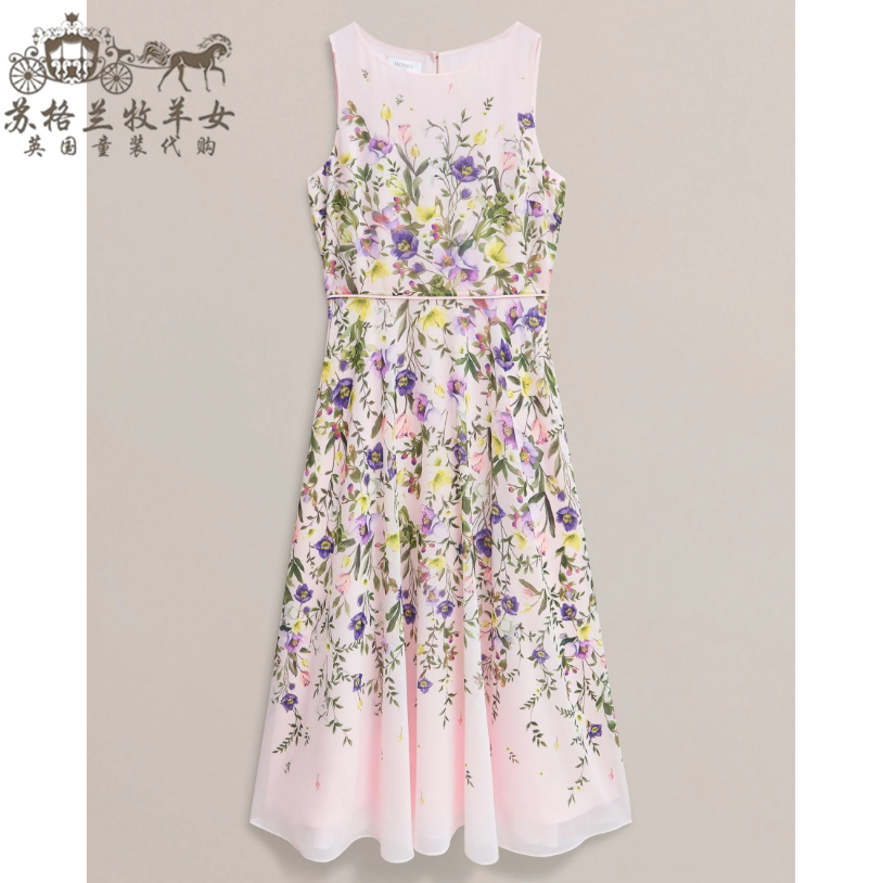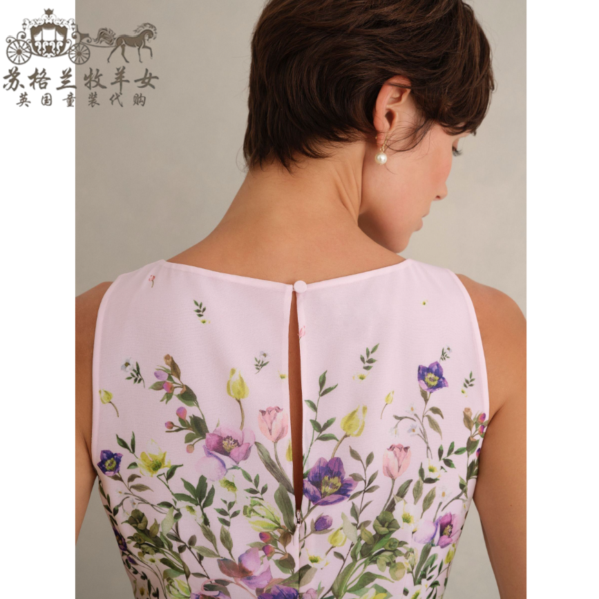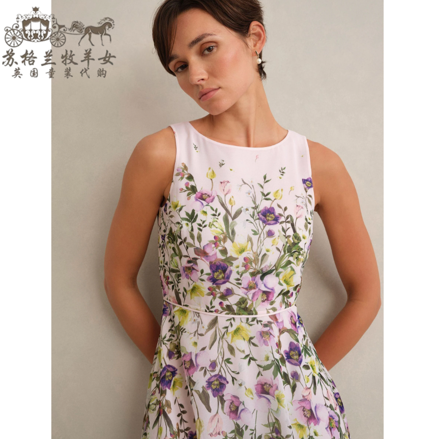 英国Hobbs代购 女装26春新款 英伦印花无袖礼服裙中长裙连衣裙子