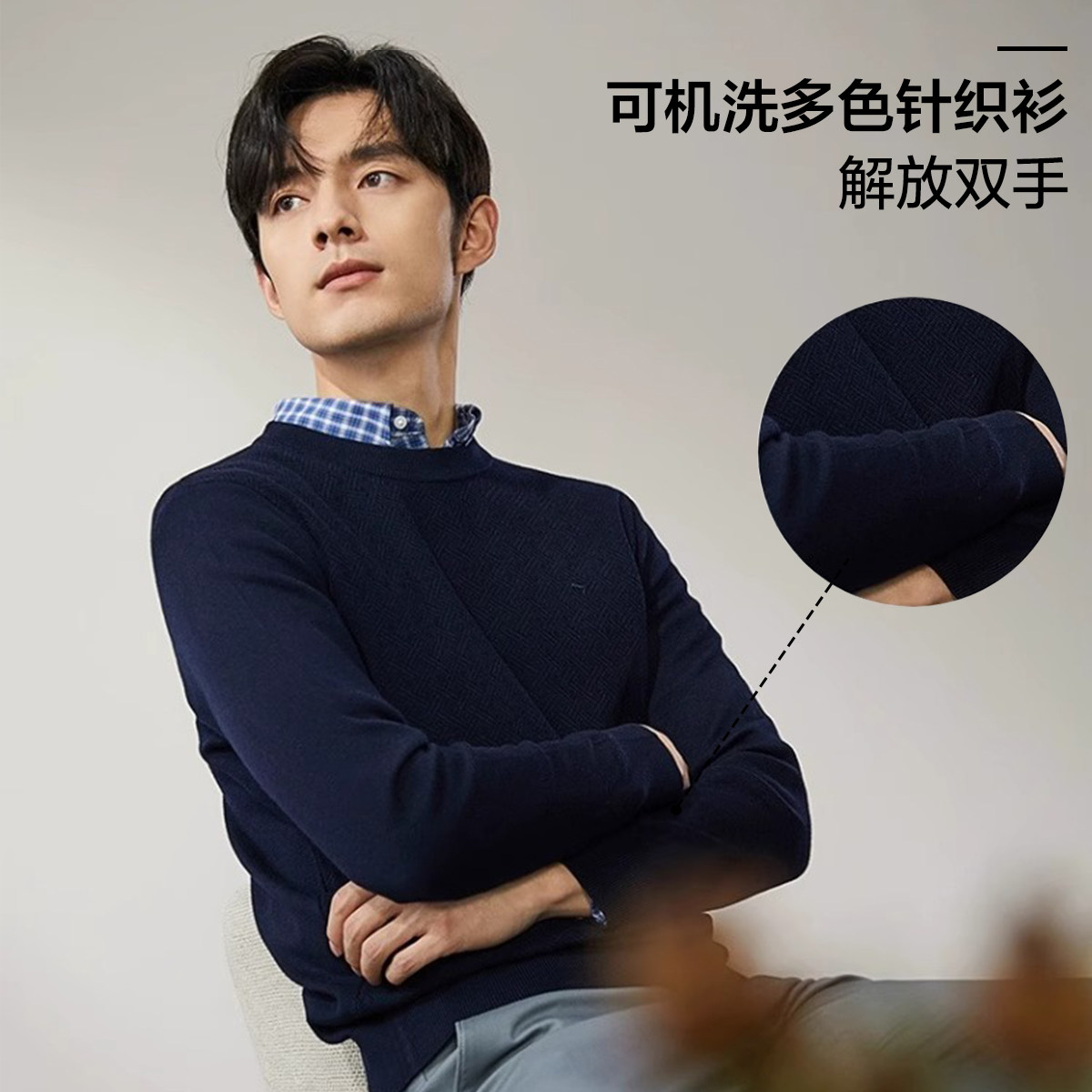 柒牌可机洗长袖羊毛衫25秋冬新款含羊毛时尚休闲圆领中年针织毛衫
