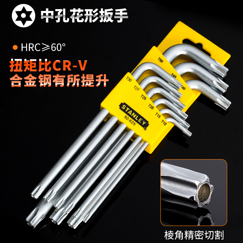 史丹利9件套公制中孔花型梅花螺丝刀L型内六角扳手六角星型T6-T50