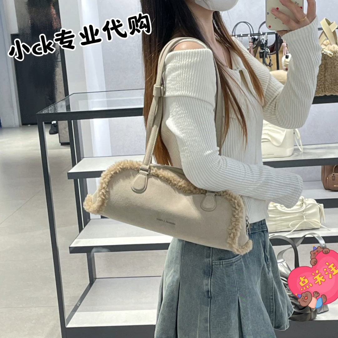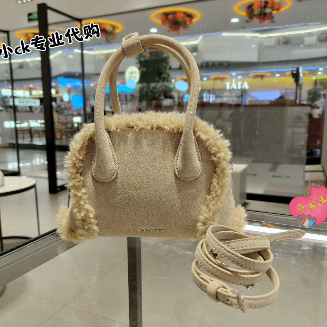 CHARLES&KEITH 25冬新款CK2-30160242-1毛绒手提斜挎小方包女包