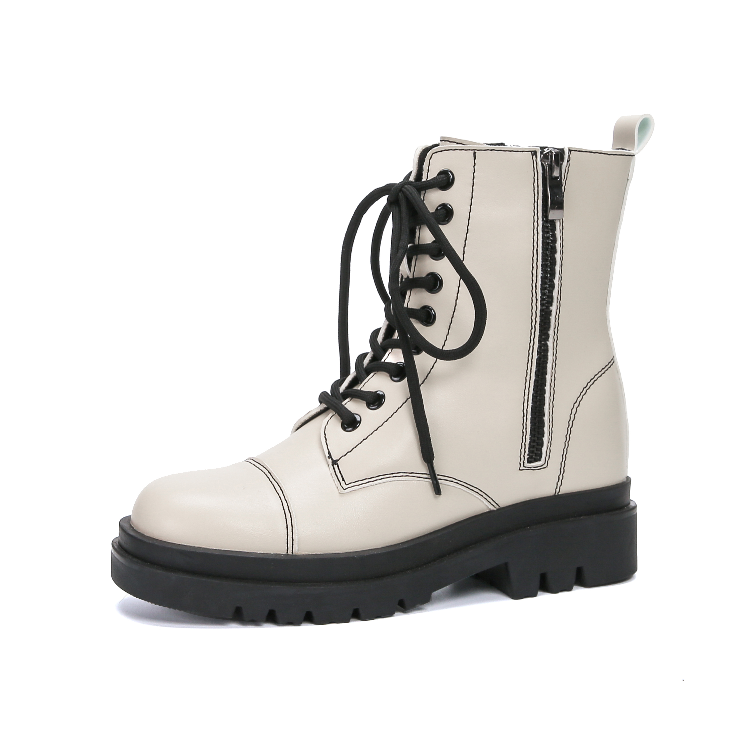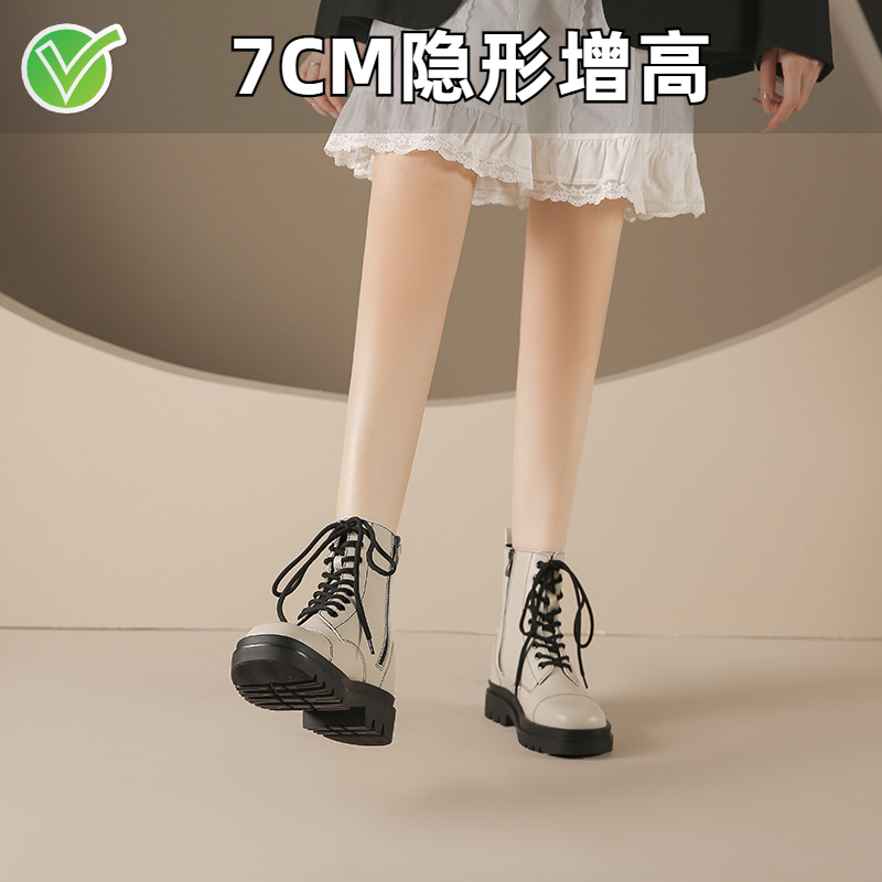 小个子真皮内增高白色马丁靴春秋系带小码女鞋313233英伦厚底短靴