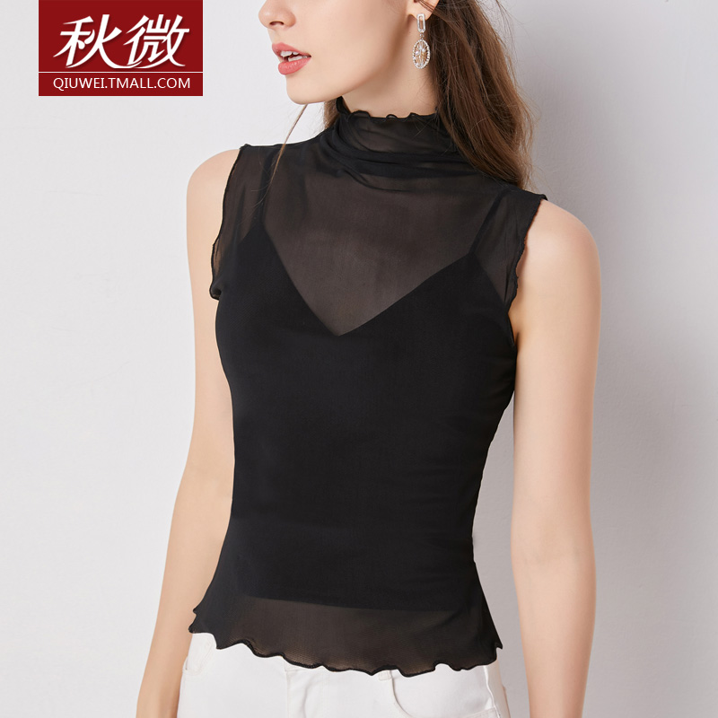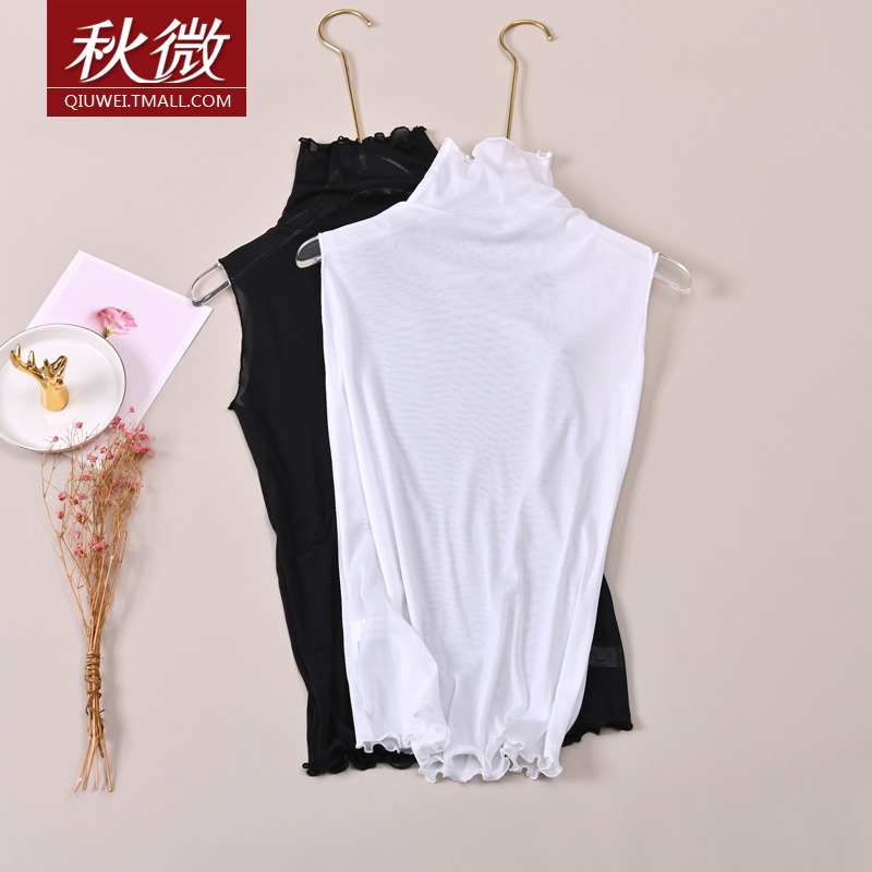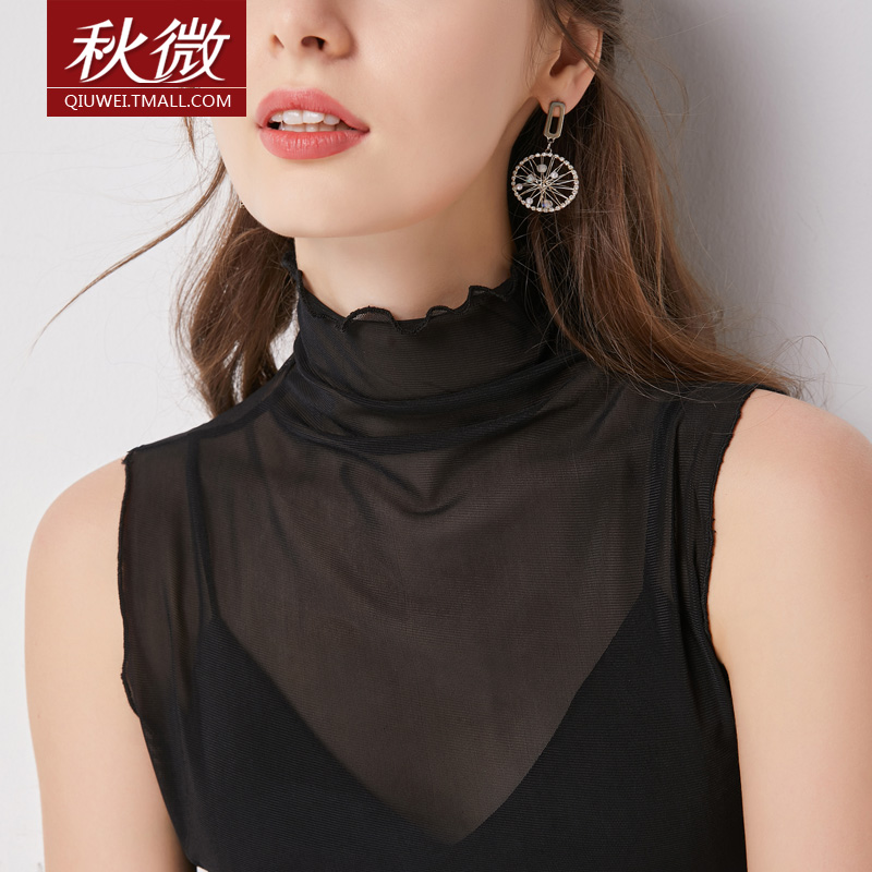 秋微2020秋冬新款蕾丝小衫气质高领网纱无袖内搭打底衫假领子女