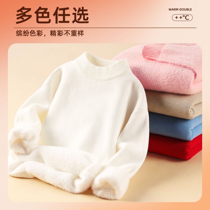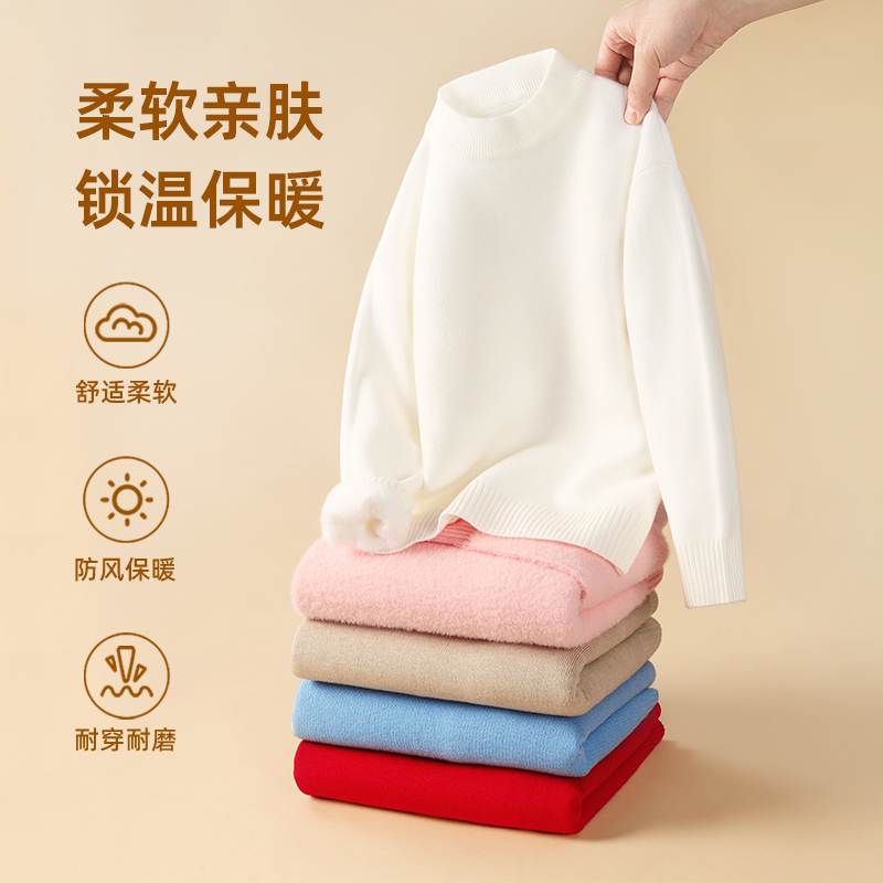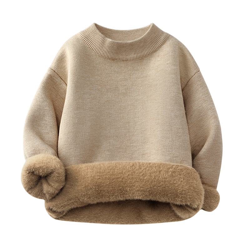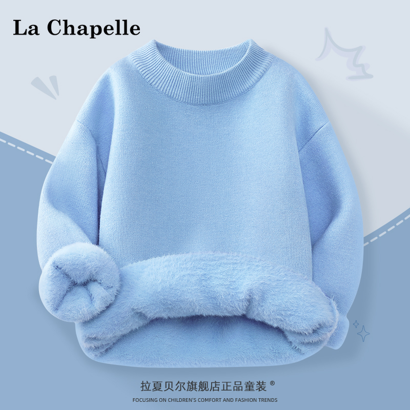 拉夏贝尔男童毛衣2025年冬季加绒针织衫大童加厚保暖上衣儿童冬装