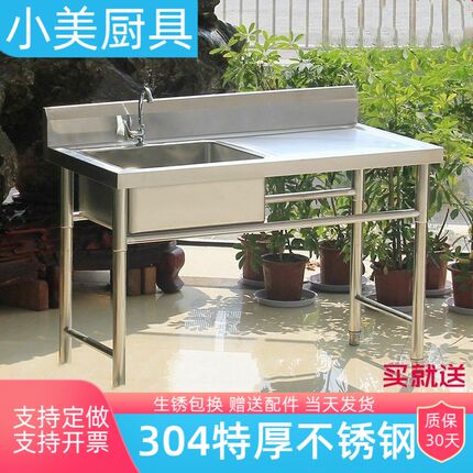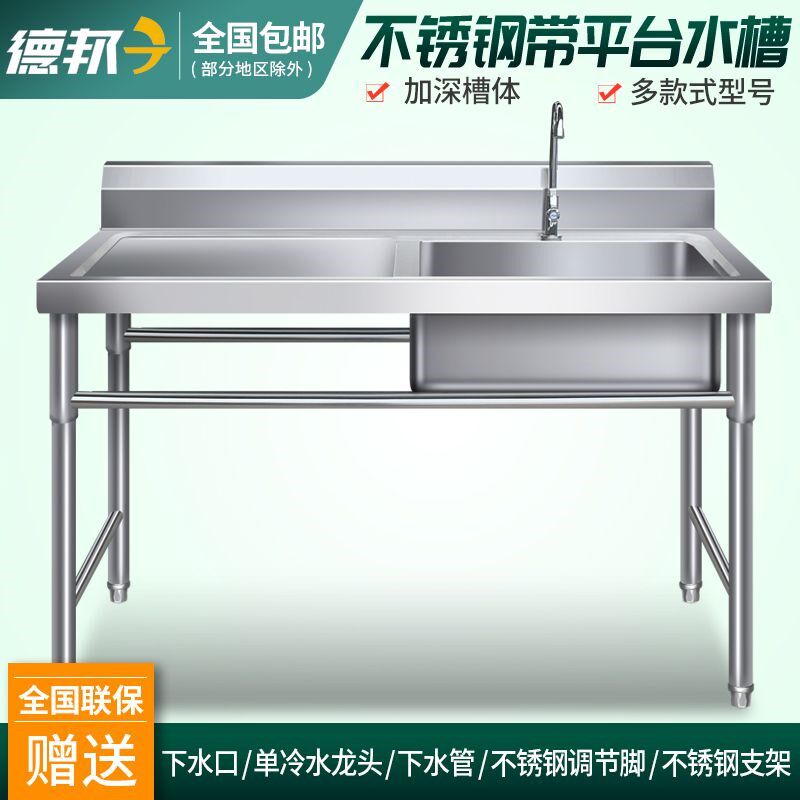 304不锈钢水槽厨房p支架商用饭店洗衣台洗菜盆洗碗池带平台洗刷盆