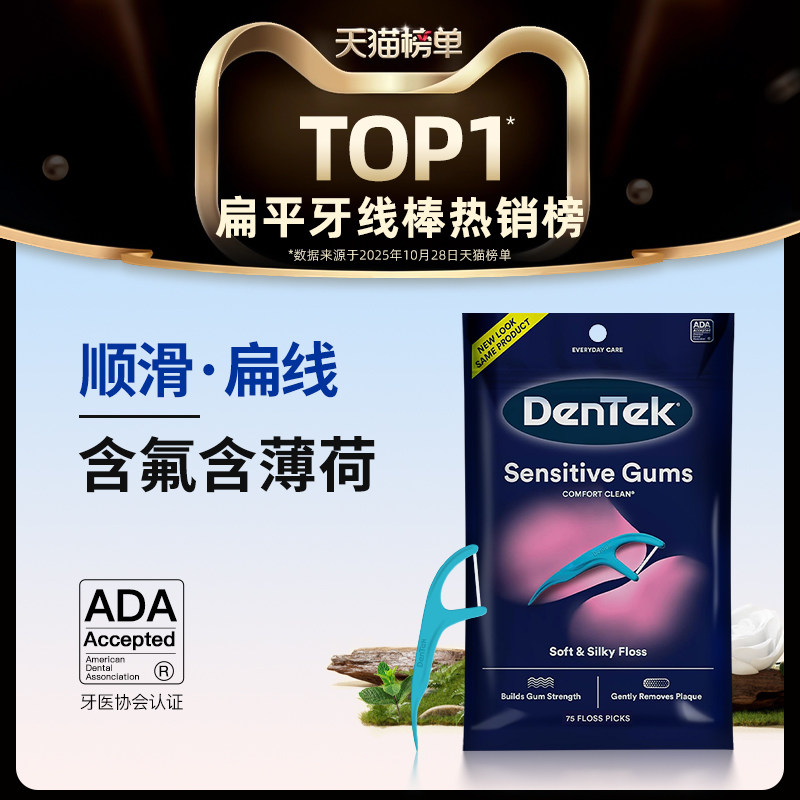 2025新款德泰克DenTek进口牙线棒扁线超细薄荷含氟官方旗舰店正品