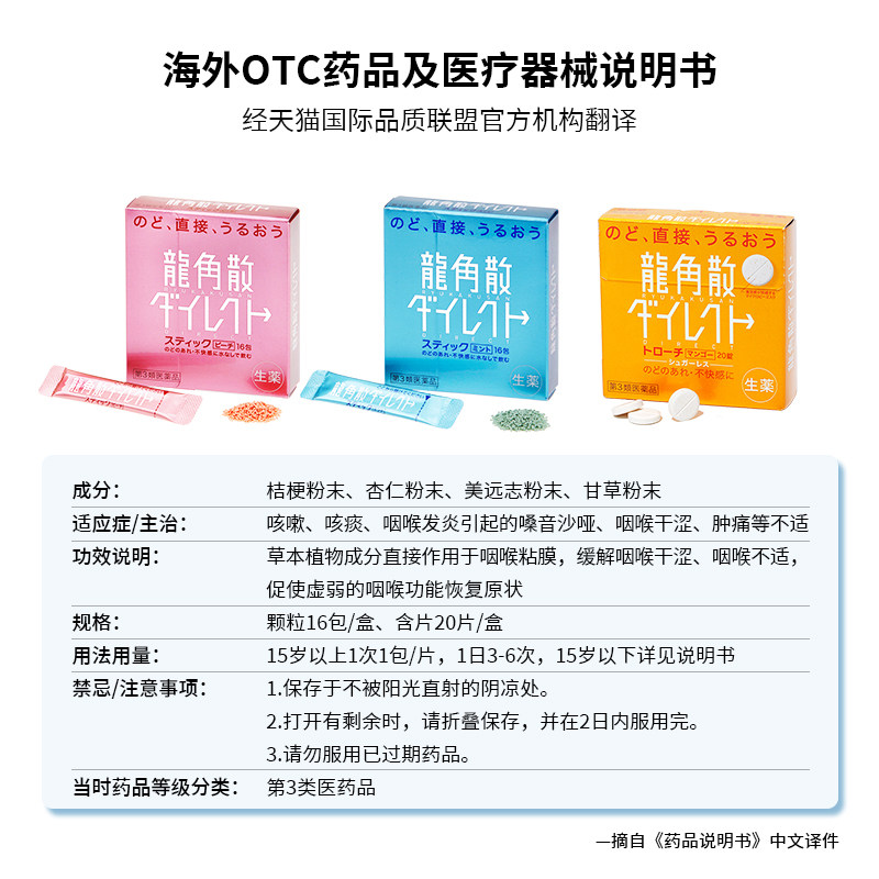 【香港直邮】日本龙角散草本免水润薄荷水蜜桃颗粒芒果含片护嗓子