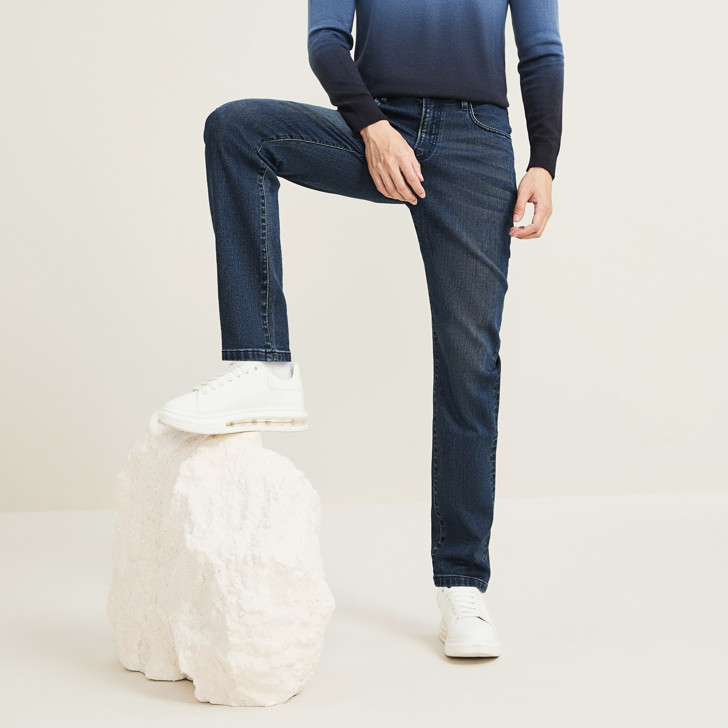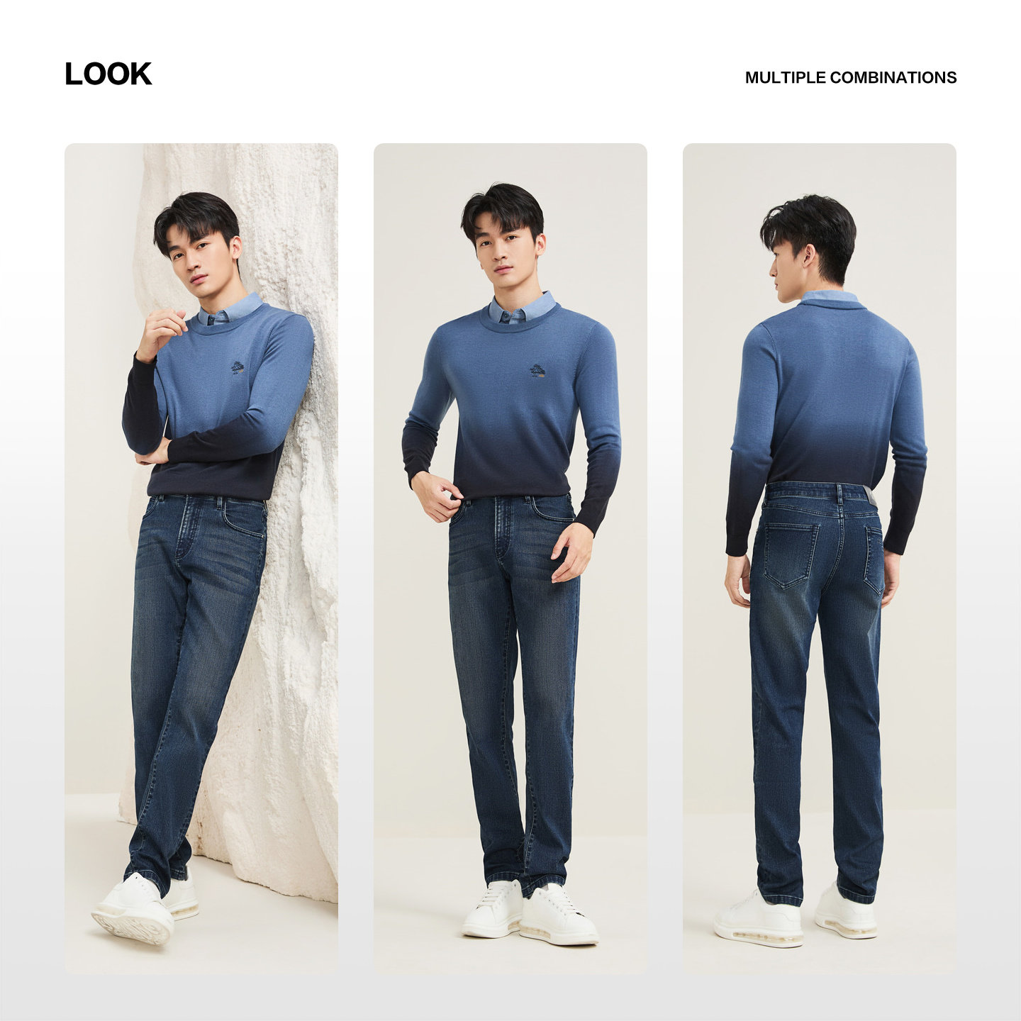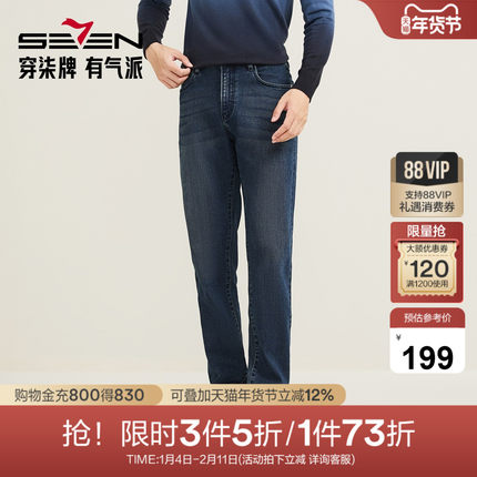 【提花牛仔】柒牌牛仔裤男士秋季25新款长裤休闲中腰直筒修身裤子