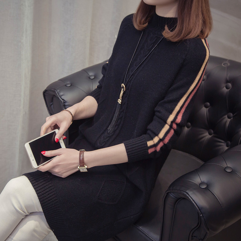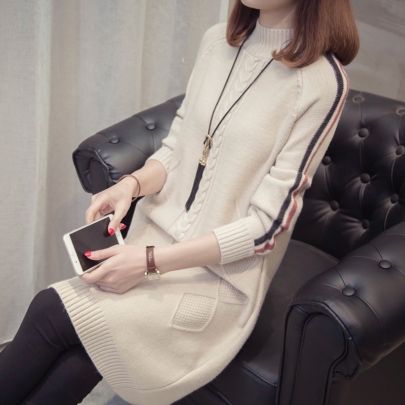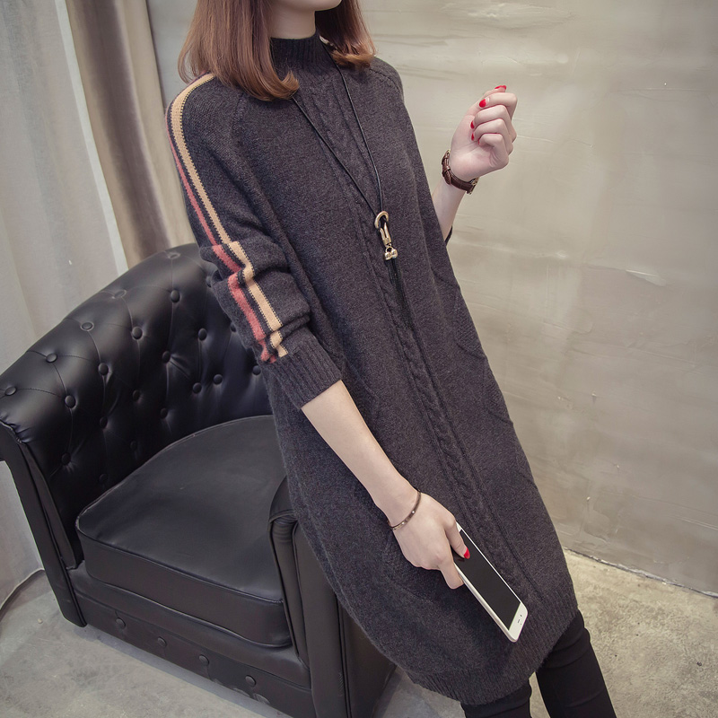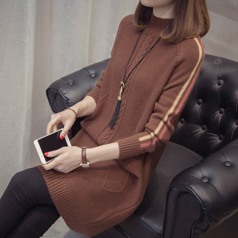 半高领打底毛衣裙加厚女秋冬季韩版宽松中长款复古麻花套头针织衫