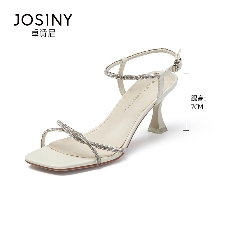 卓诗尼夏季女凉鞋撤柜正品方头细跟性感水钻交叉带凉鞋一字扣带