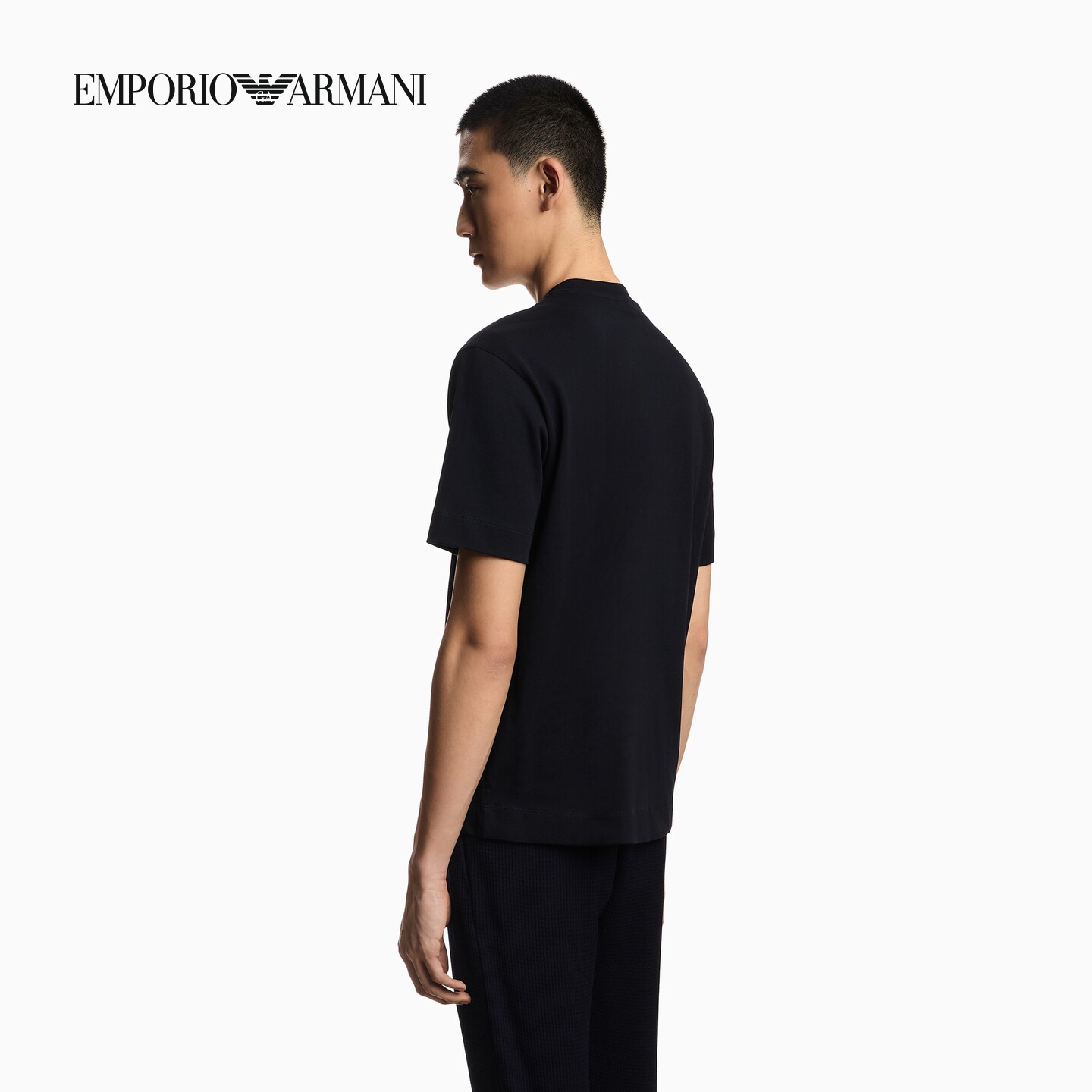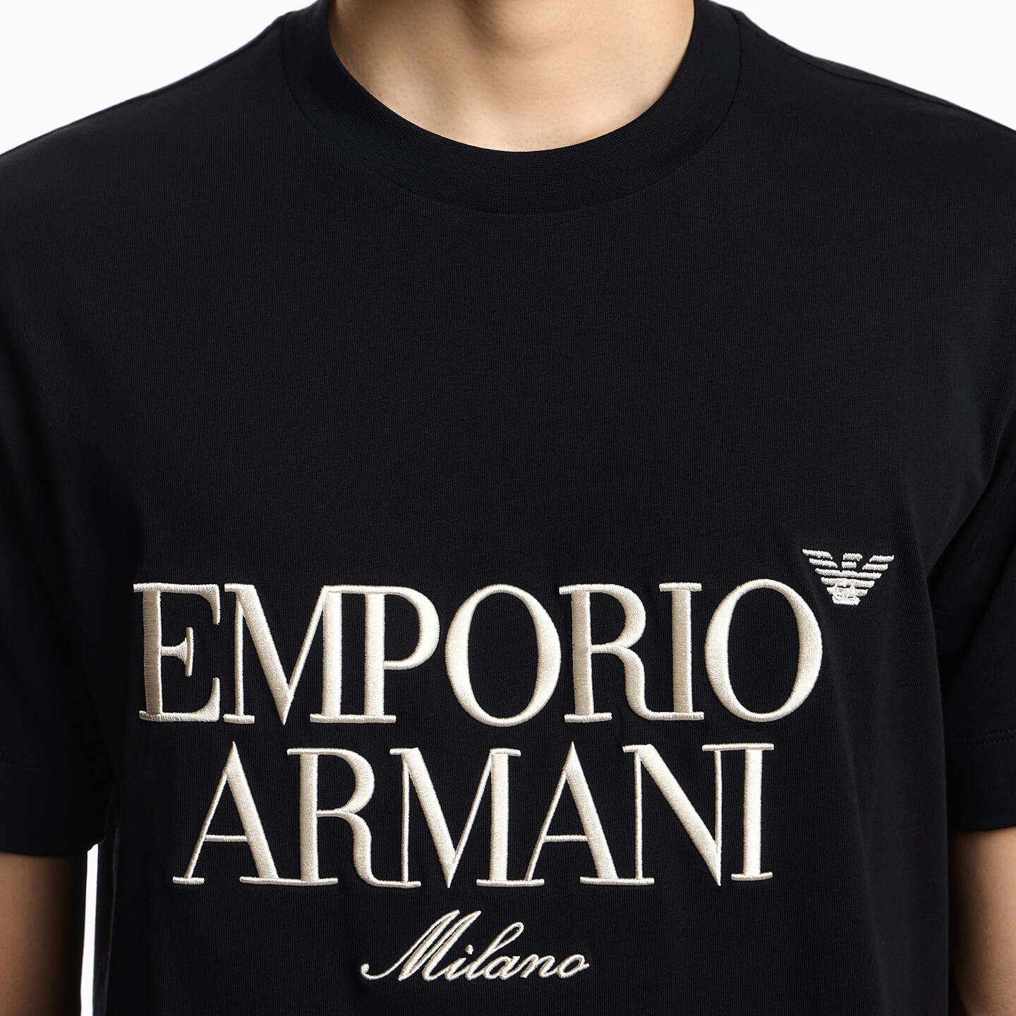阿玛尼男士纯棉圆领刺绣短袖T恤