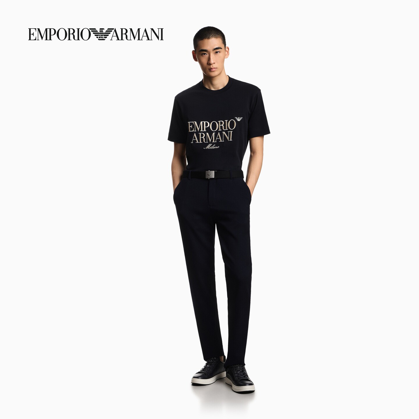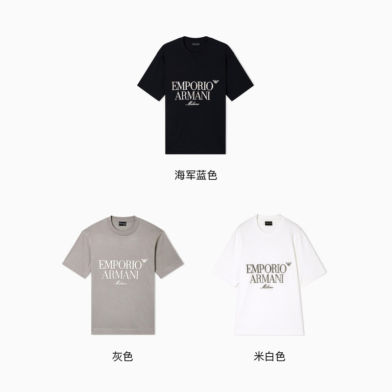 EMPORIO ARMANI/阿玛尼春夏新款男女情侣圆领短袖正肩刺绣纯棉T恤