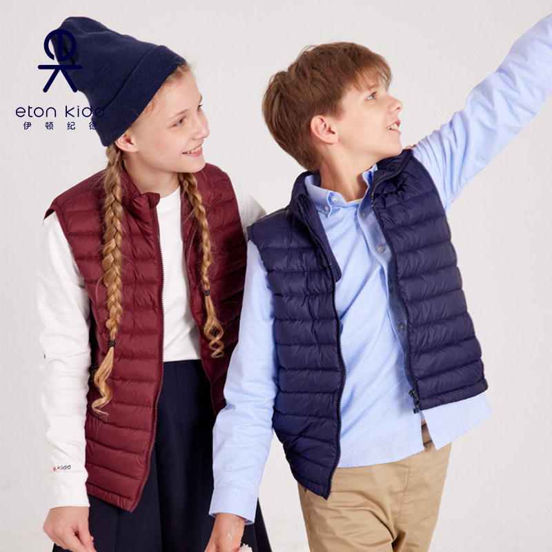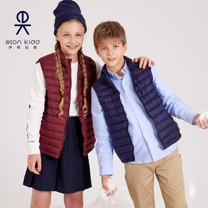 伊顿纪德儿童装轻防水羽绒服男女童2021冬新款立领羽绒背心21U901