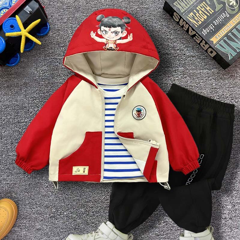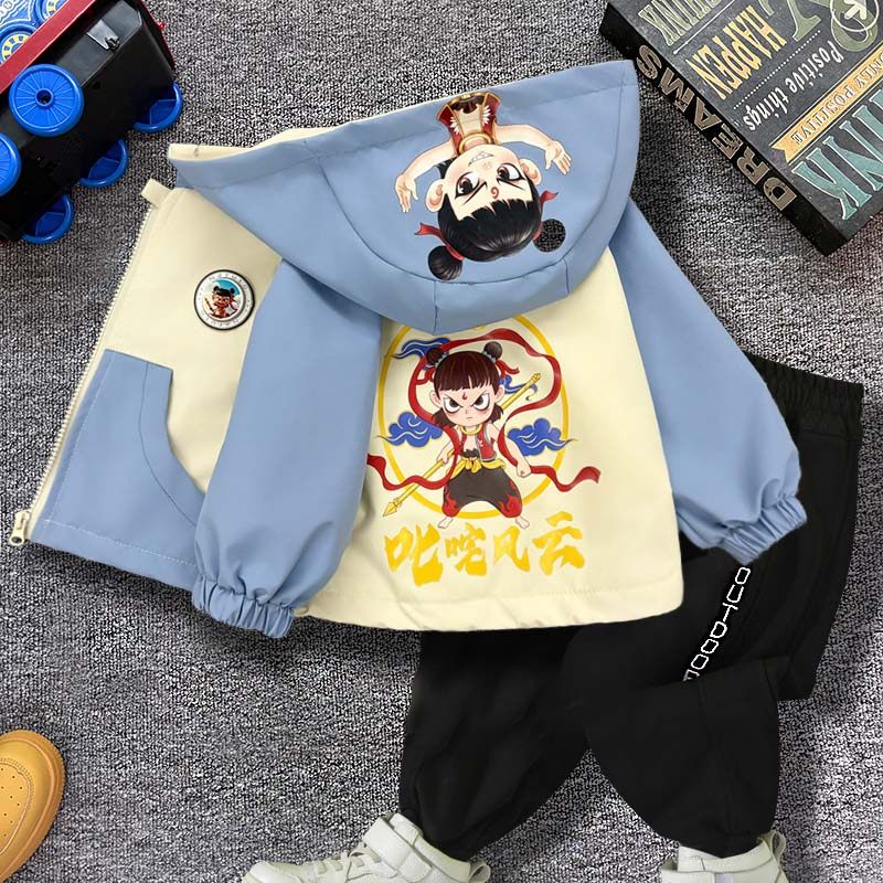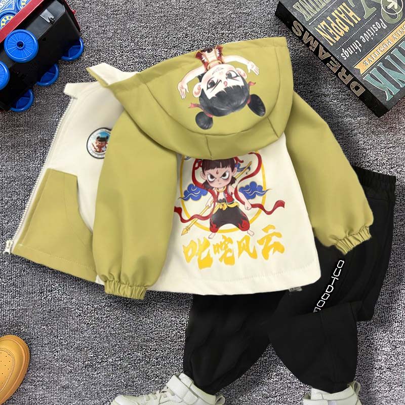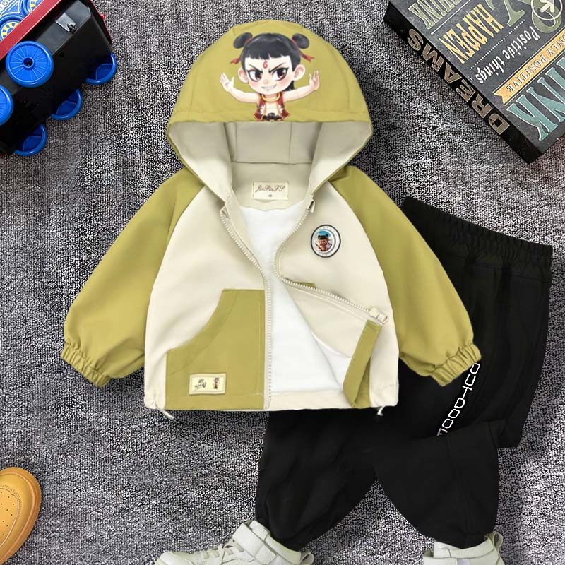 男童春秋套装2025新款洋气儿童连帽外套宝宝春季冲锋衣两件套裤子