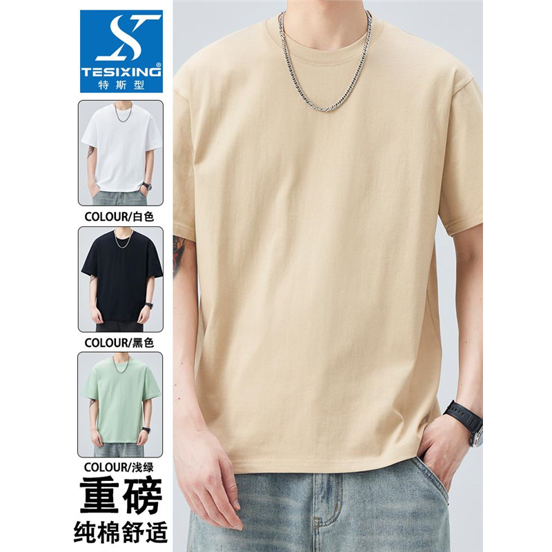 以纯YISHION重磅t恤男士纯棉短袖夏季宽松圆领上衣潮流纯色休闲半