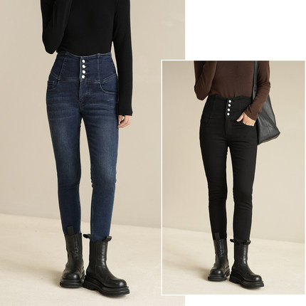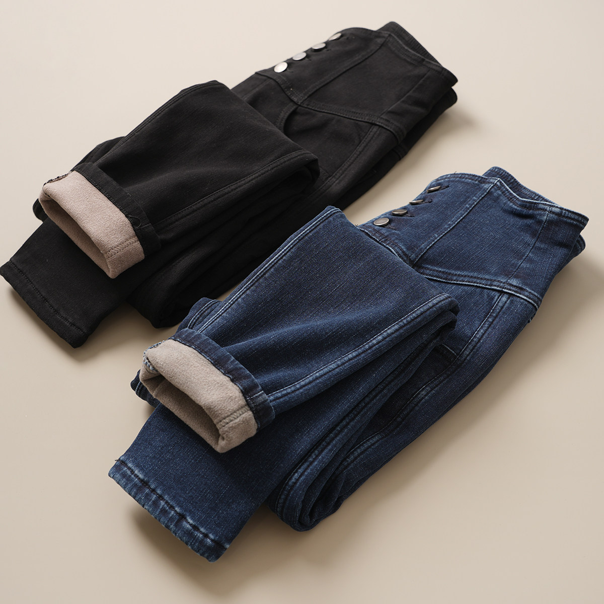特 福利 女士加绒牛仔裤 修身百搭高腰铅笔裤 保暖长裤 冬款女装