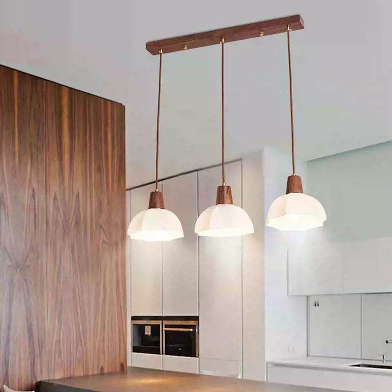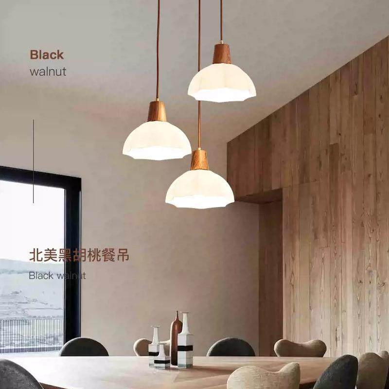 黑胡桃木餐厅灯吊灯三头玻璃北欧led餐桌饭厅灯现代中式吧台灯具