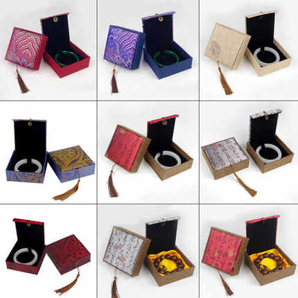 亚麻布流苏礼盒高级中国风红腰果复古手镯手串佛珠正方形收纳盒子