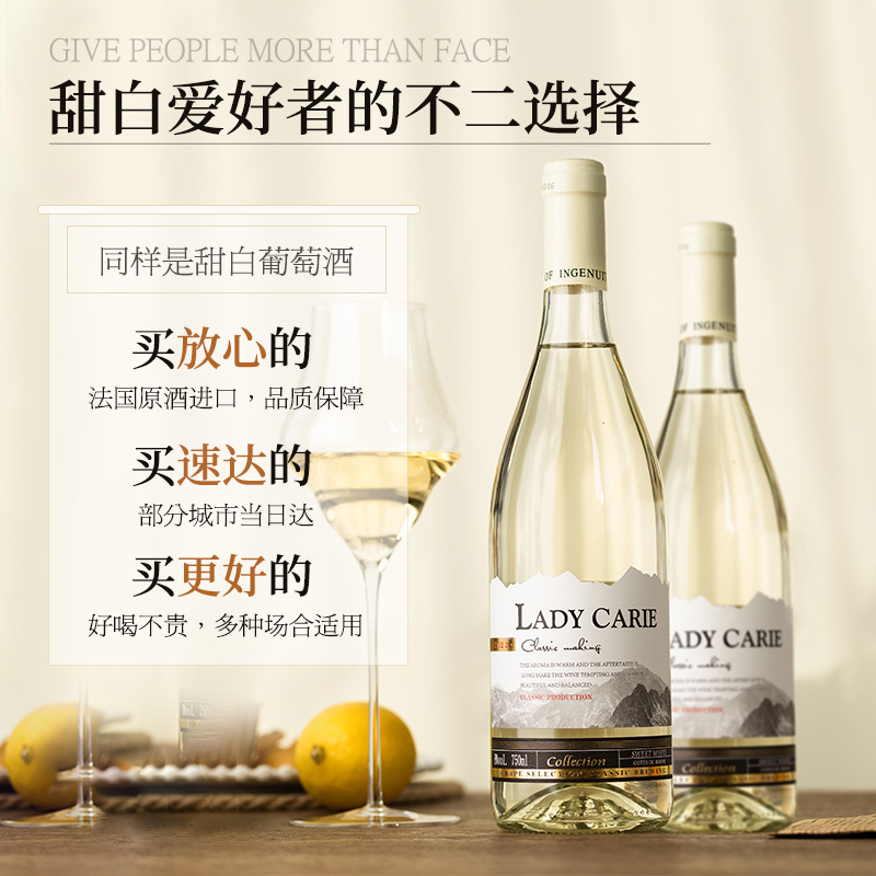 法国进口甜白葡萄酒霞多丽女生微醺果酒原酒礼盒装茉莉半甜