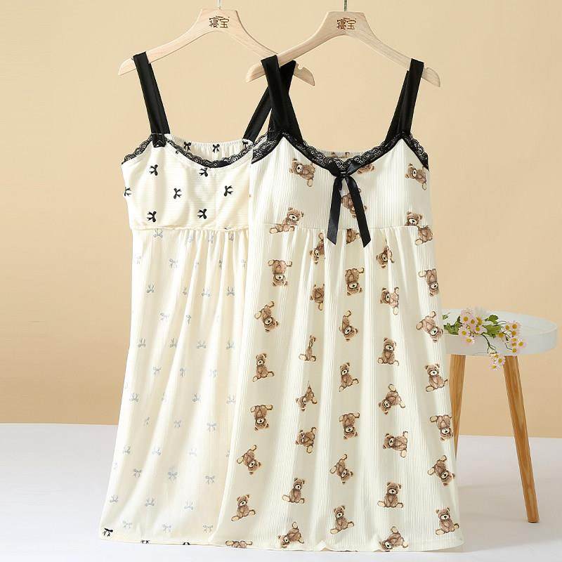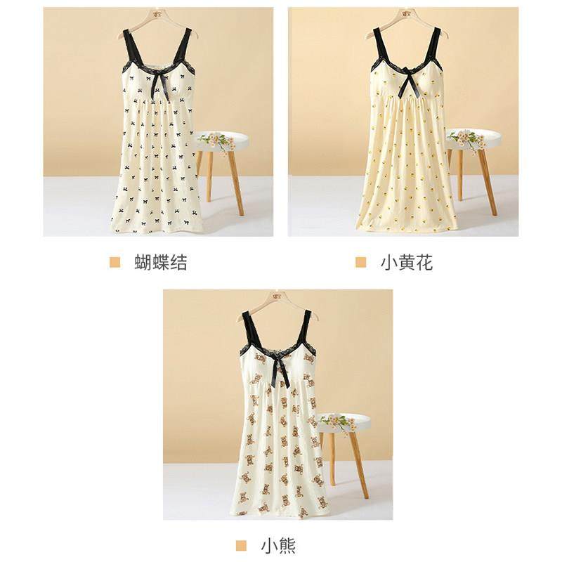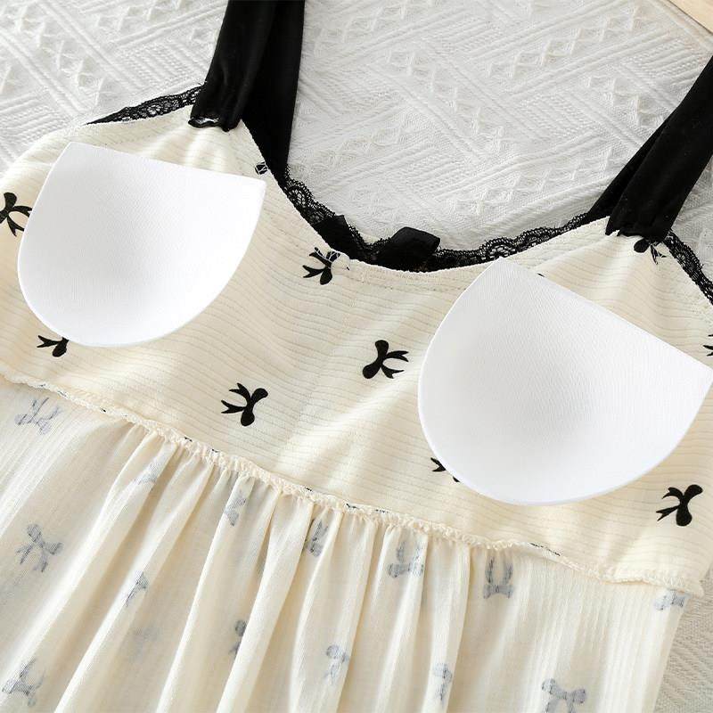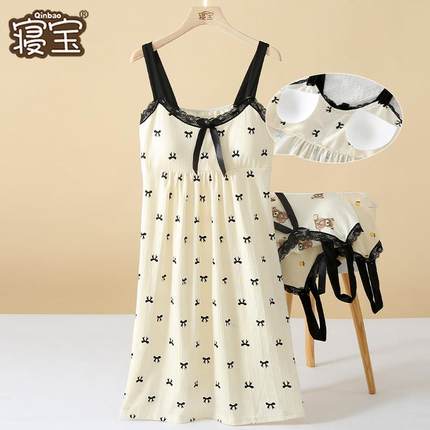 带胸垫吊带睡裙女款夏季莫代尔棉冰丝睡衣文胸背心裙连衣裙家居服