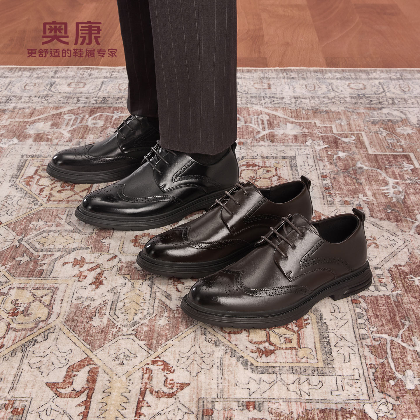 奥康男鞋英伦风布洛克皮鞋真皮正装办公舒适系带皮鞋1253211039B