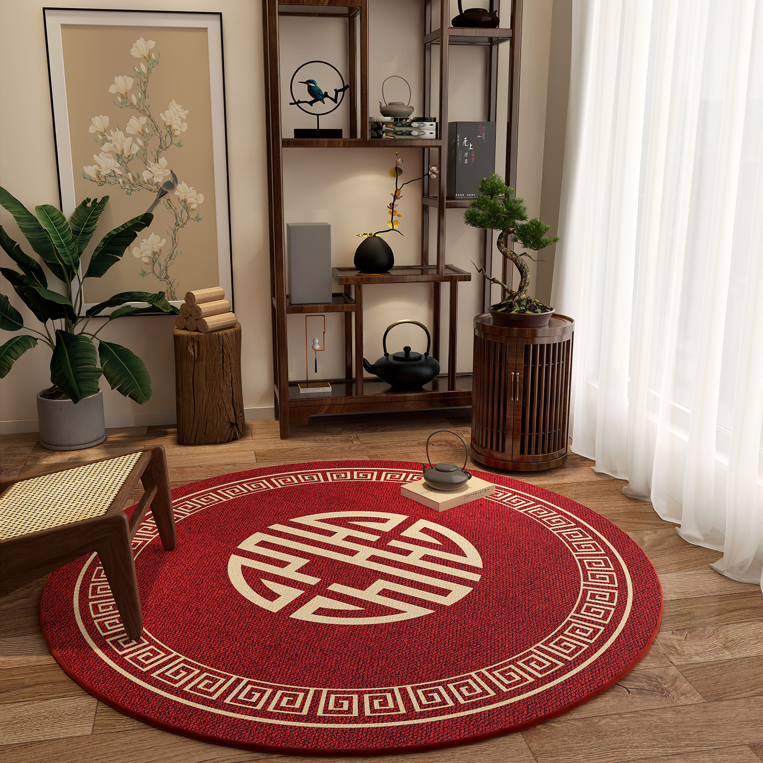红色喜庆新中式圆形客厅地毯卧室沙发茶几毯书房转椅耐脏防滑地垫