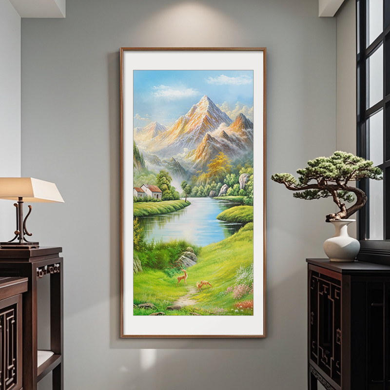 金山聚宝盆手绘油画西墙玄关装饰画入户迎门墙山水画风景风水挂画