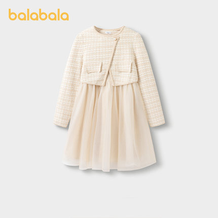 巴拉巴拉女童连衣裙中大童针织公主裙儿童小香风裙子秋装新款童装