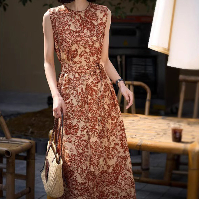 提花真丝背心长裙子复古桑蚕丝吊带连衣裙2025夏季新款女装