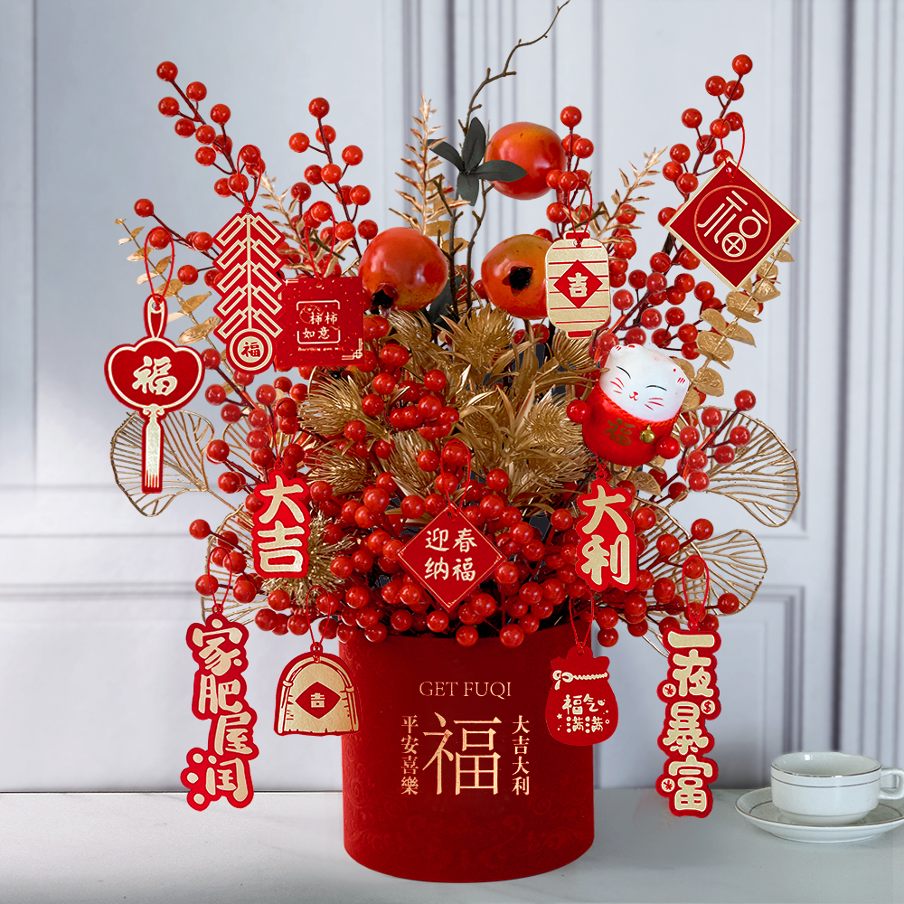 结婚装饰乔迁之喜花束摆件搬家仿真花过年插花春节年宵花福桶假花