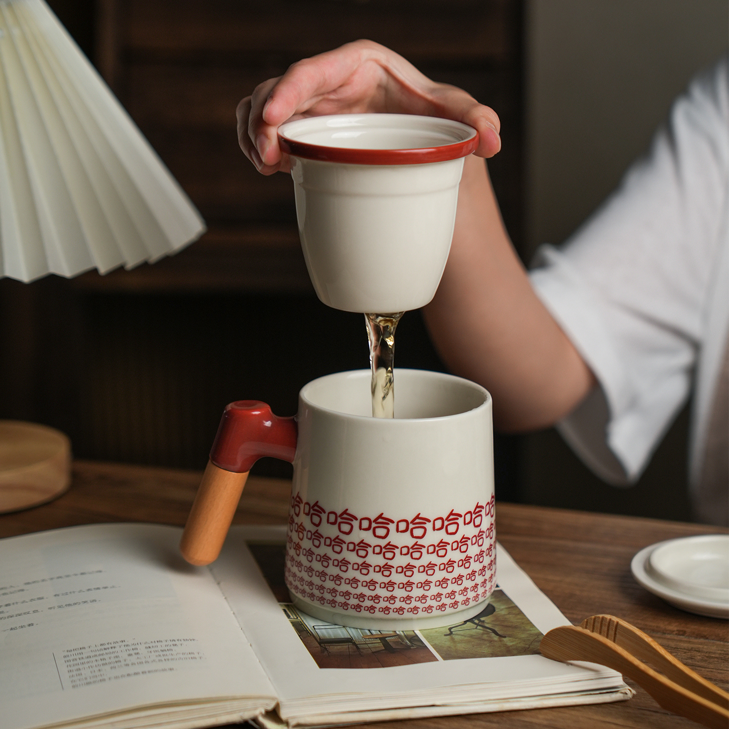 舍里带茶漏榉木手柄茶水杯