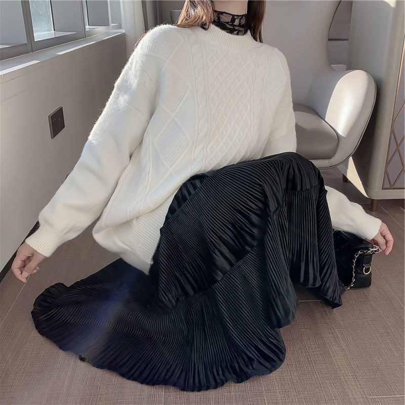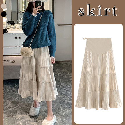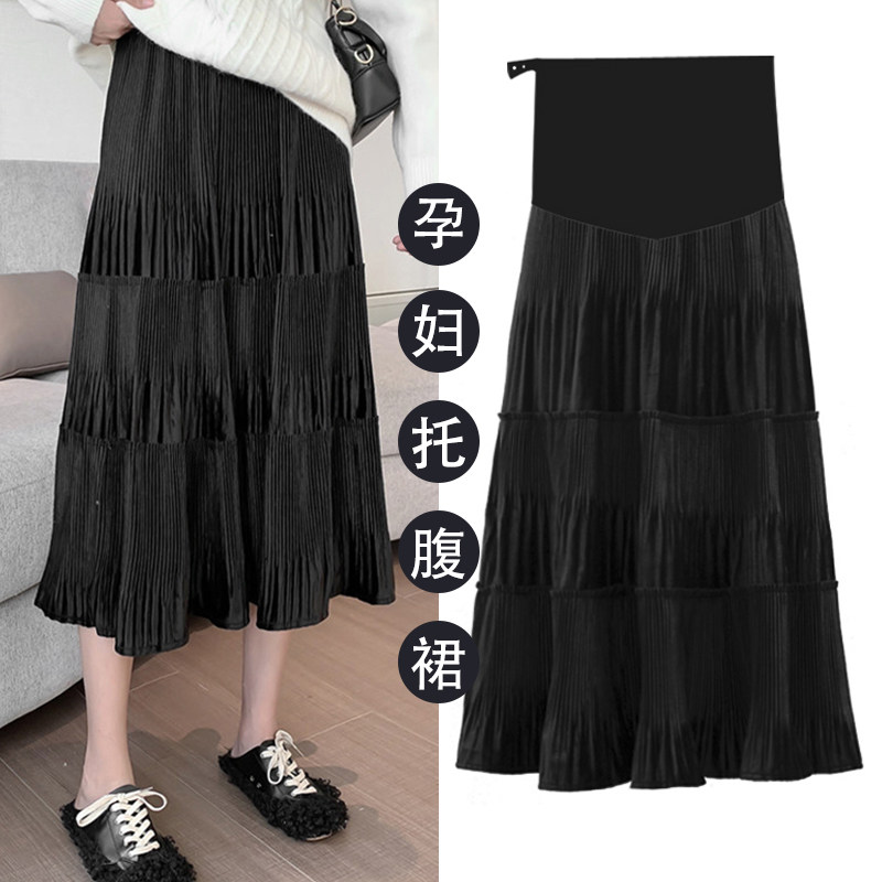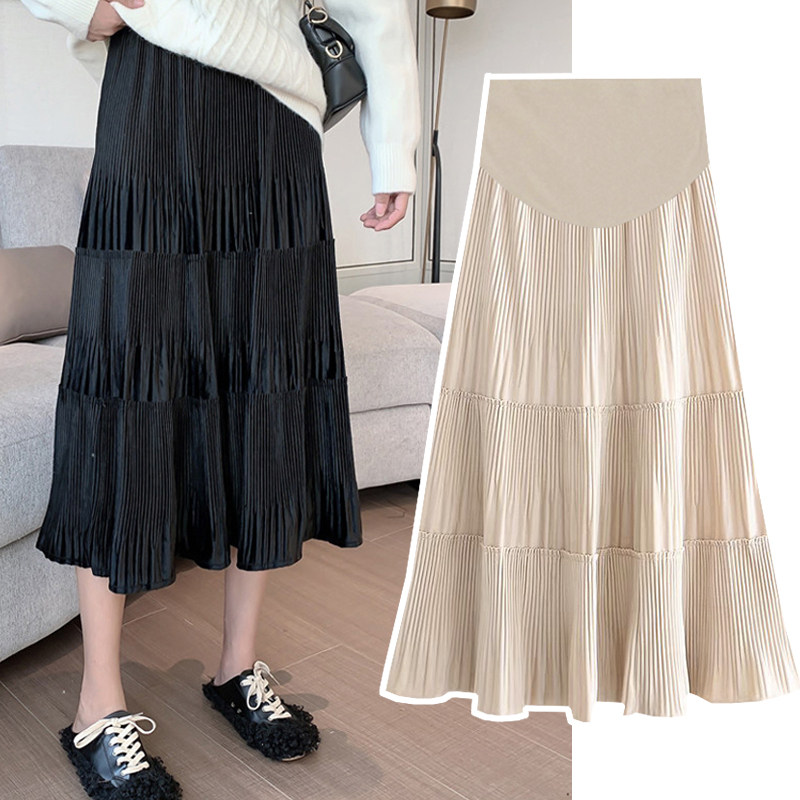 300斤超大码孕妇压褶雪纺裙春秋季时尚百搭中长款显瘦高腰半身裙