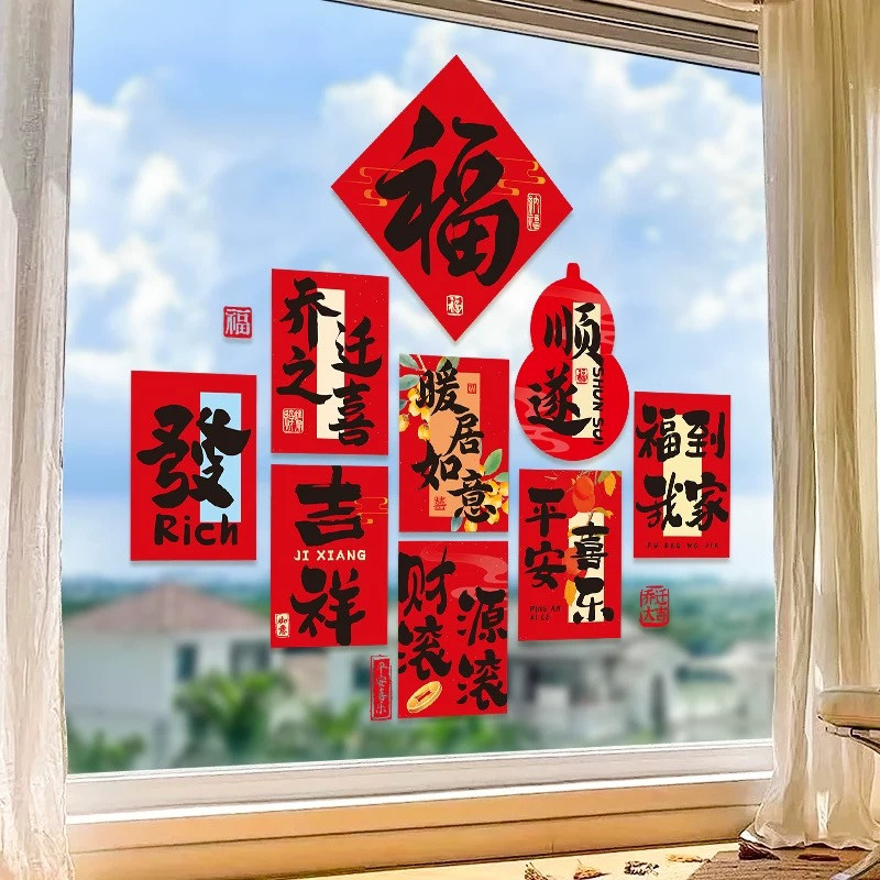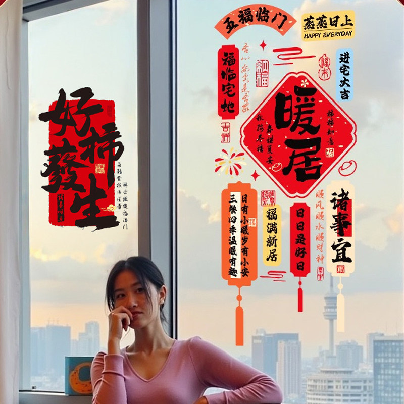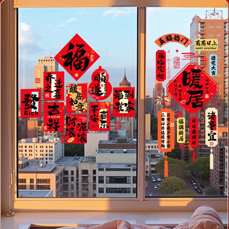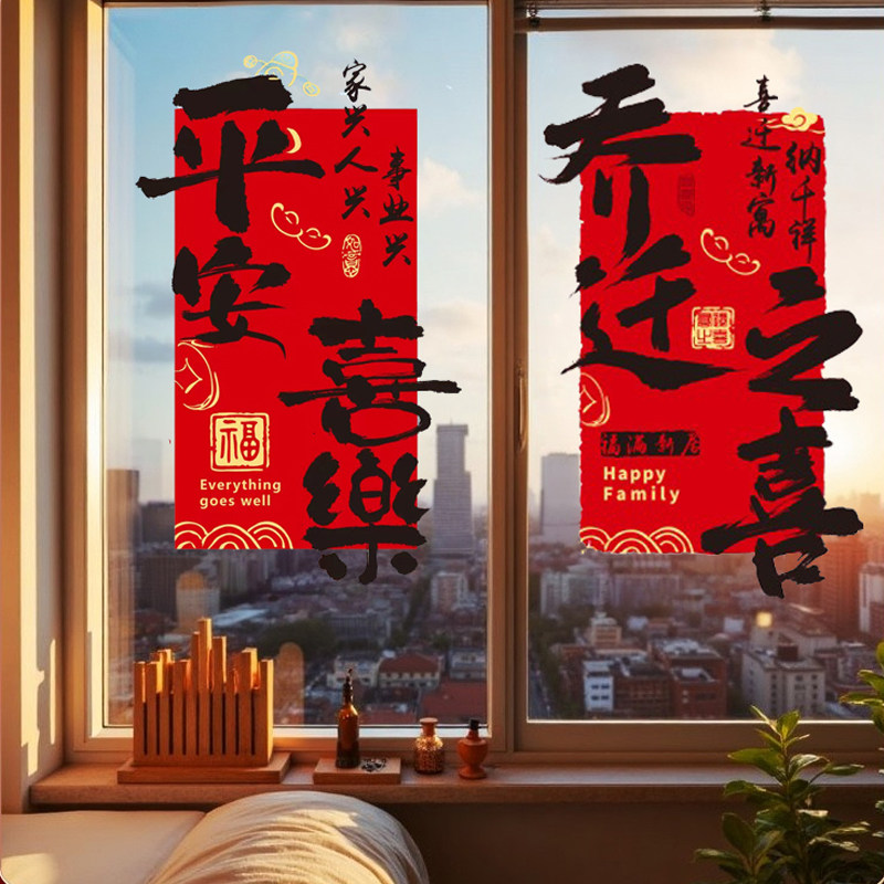 乔迁之喜装饰窗花静电贴玻璃门贴纸厨房搬家新居入宅仪式布置用品