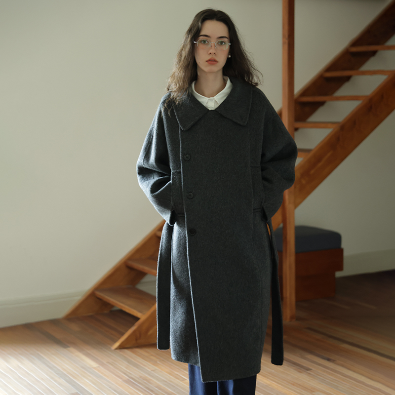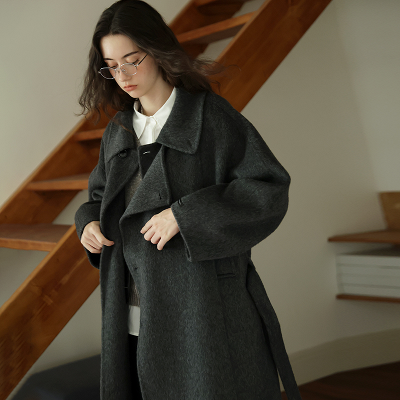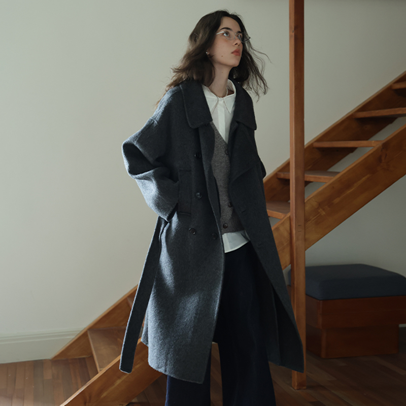 高级感知识风气质双面呢羊毛大衣女秋冬新款中长款双门襟毛呢外套