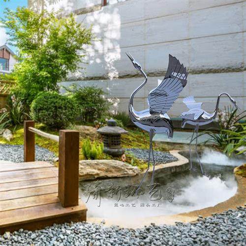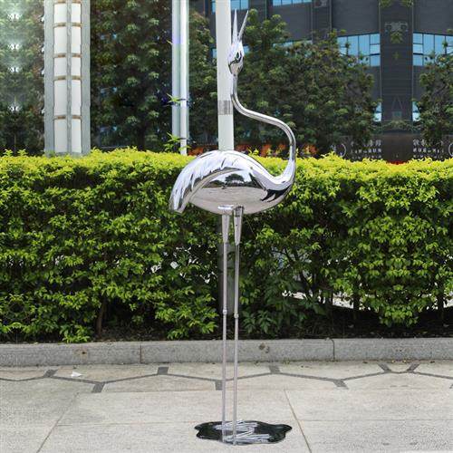 不锈钢仙鹤镜面雕塑定制酒店售楼处水池草坪火烈鸟动物摆件落地